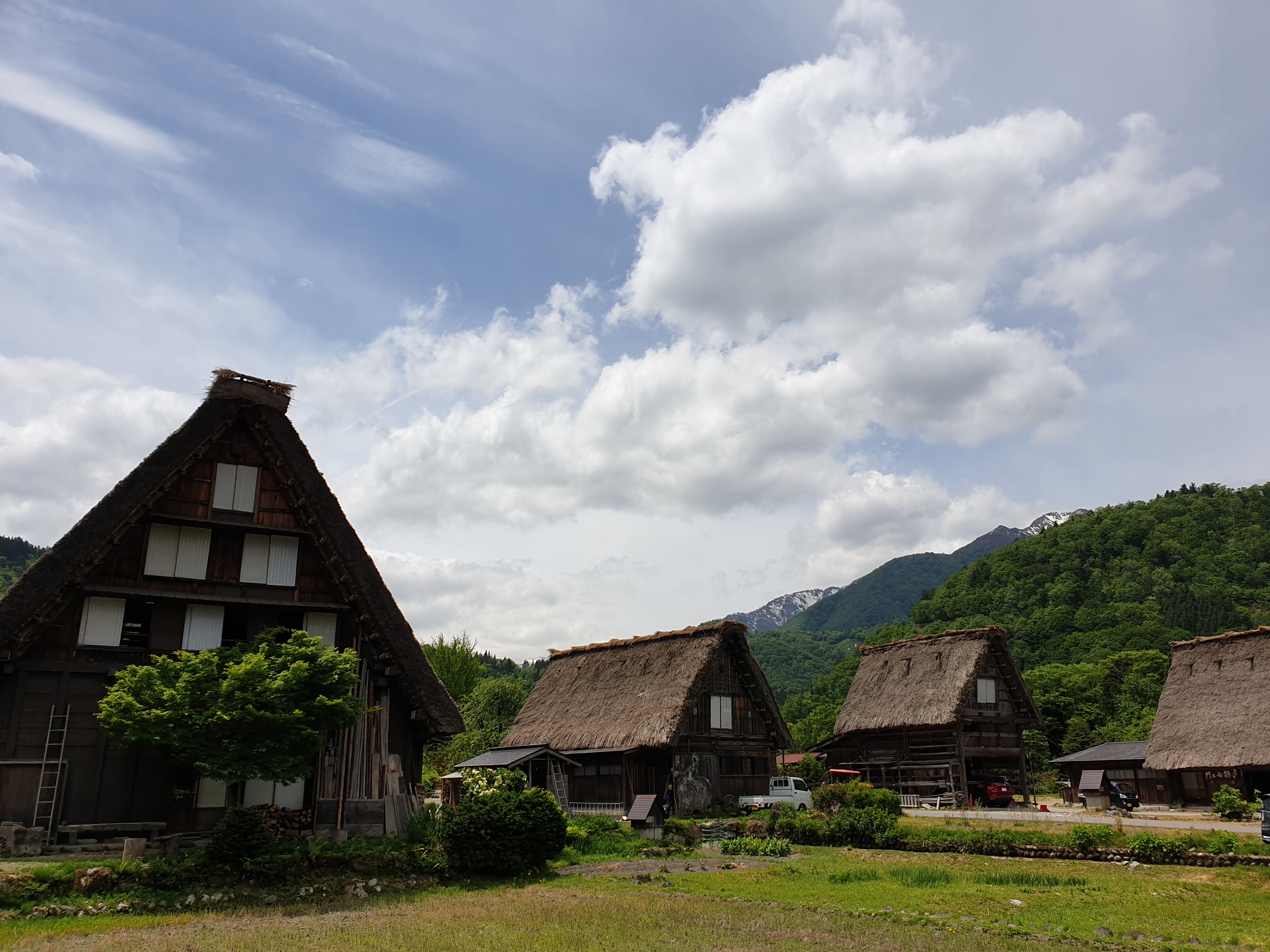 집들은 갓쇼즈쿠리 양식이라는 특유한 방식으로 지어졌으며 짚과 나무로만 만든다고 한다.