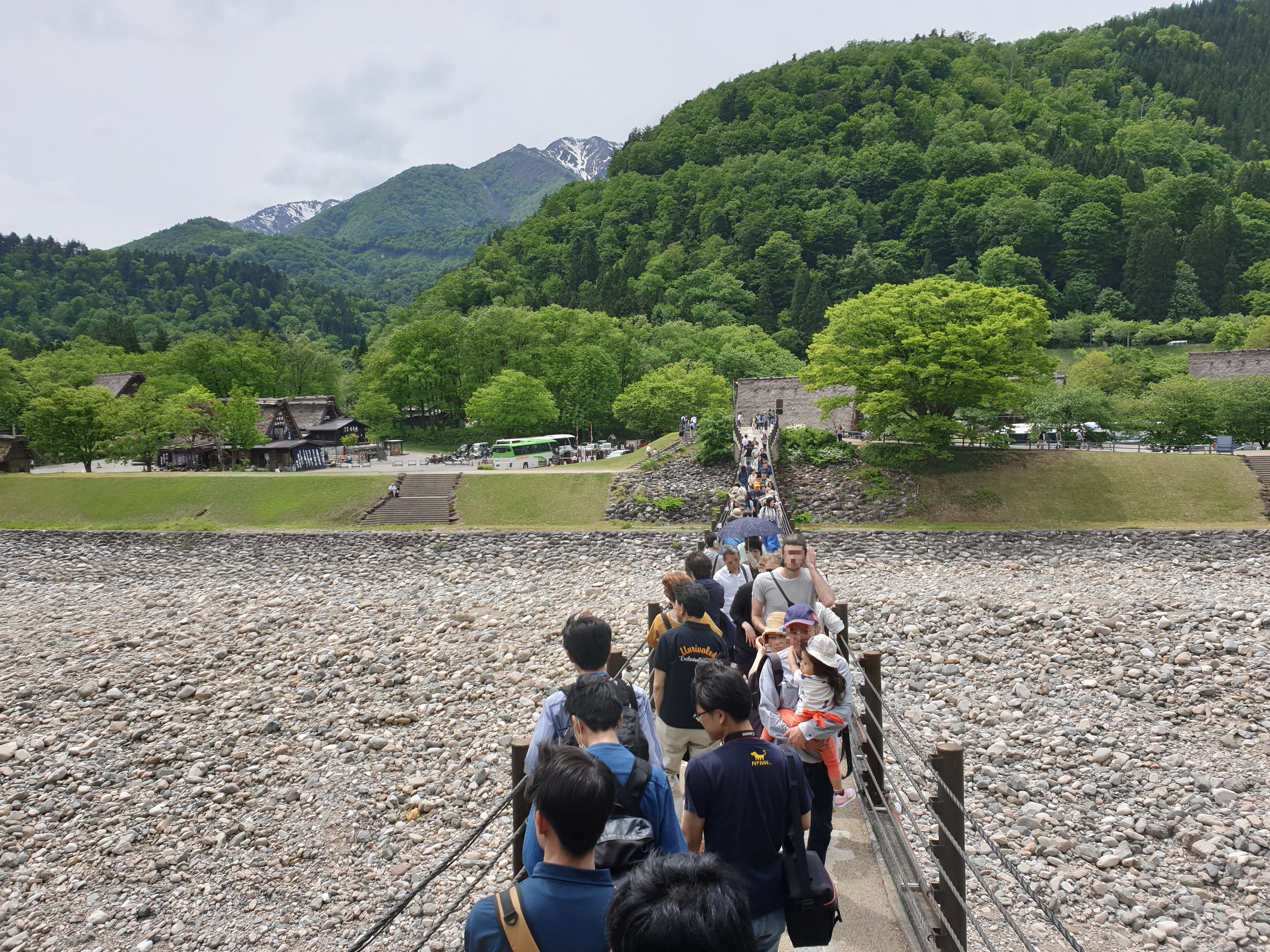 긴 다리를 건너면 시라카와고의 마을쪽이 아닌 산, 박물관 등이 있는 구역으로 넘어갈 수 있다.