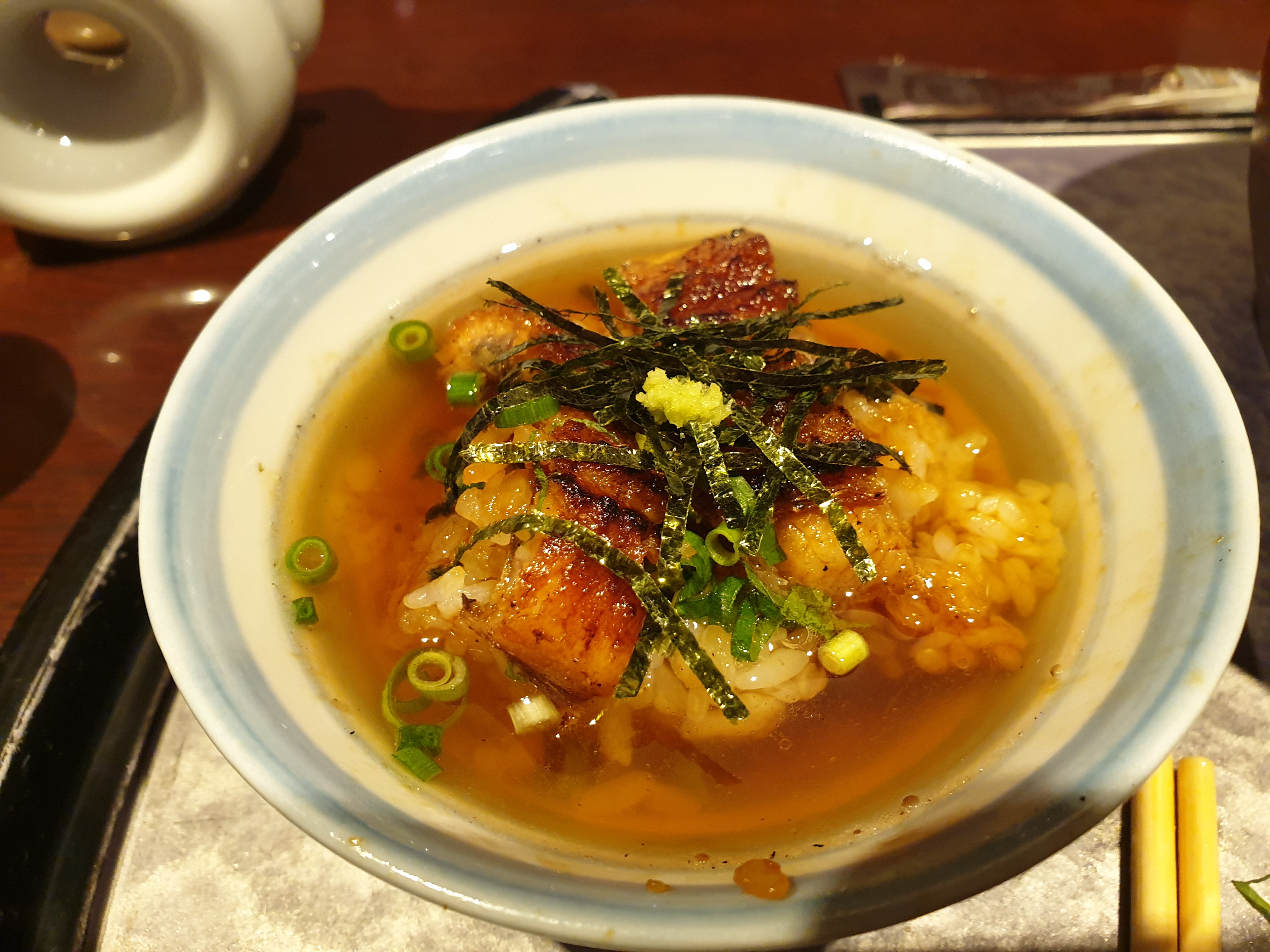 보통 오차즈케라고하면 차를 부어먹는다고 생각하는데 여기는 장어 육수를 부어준다.