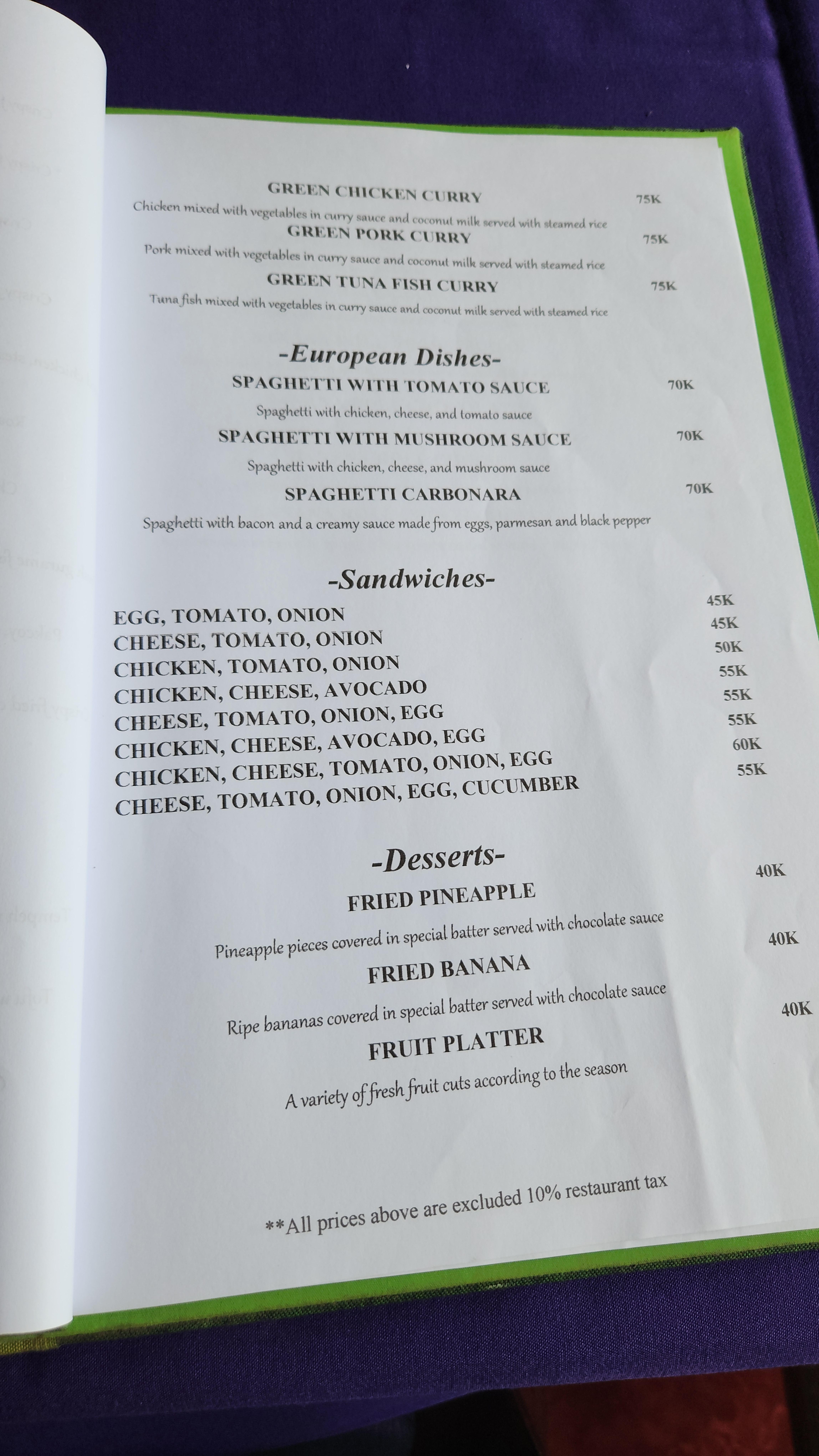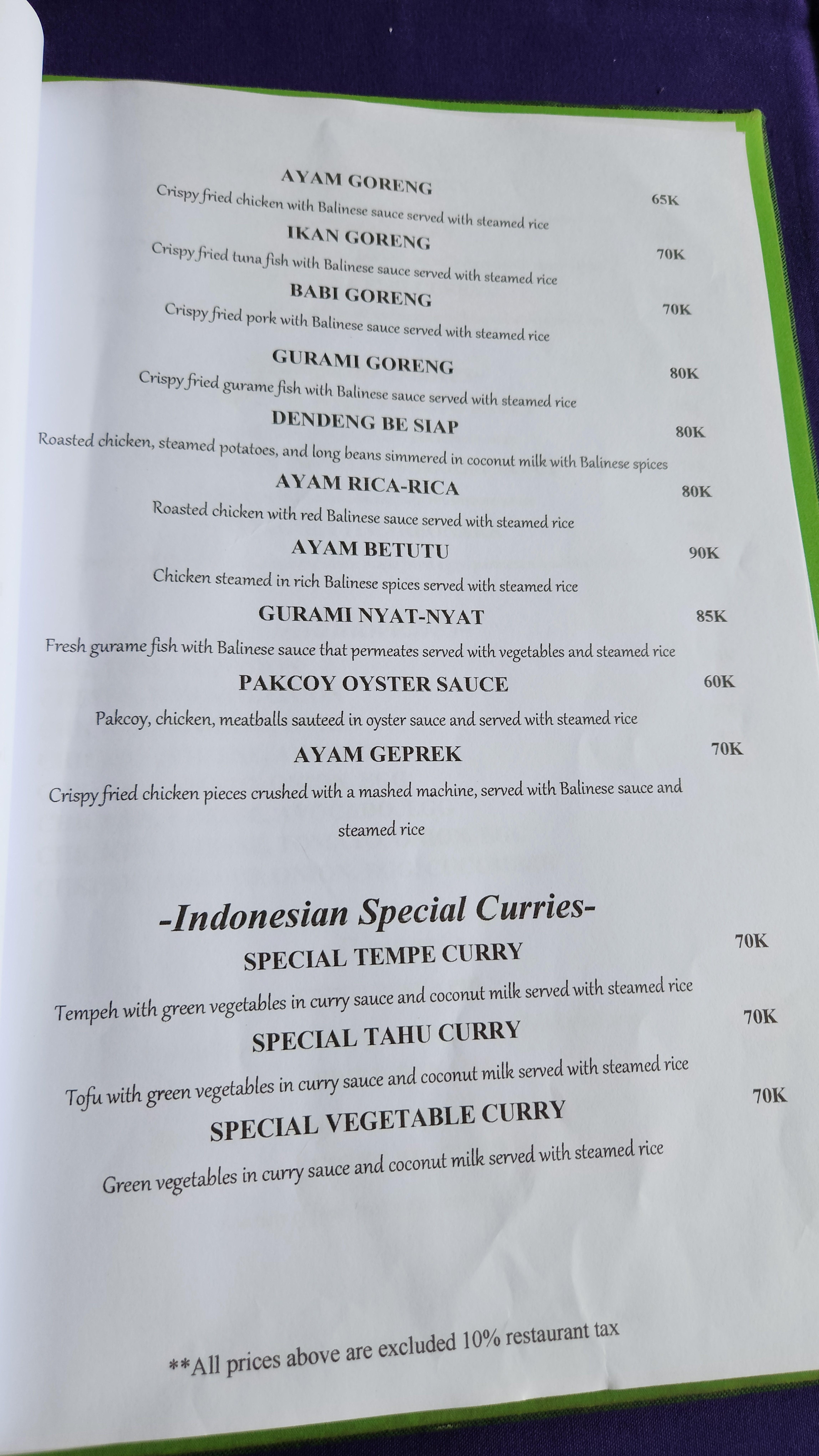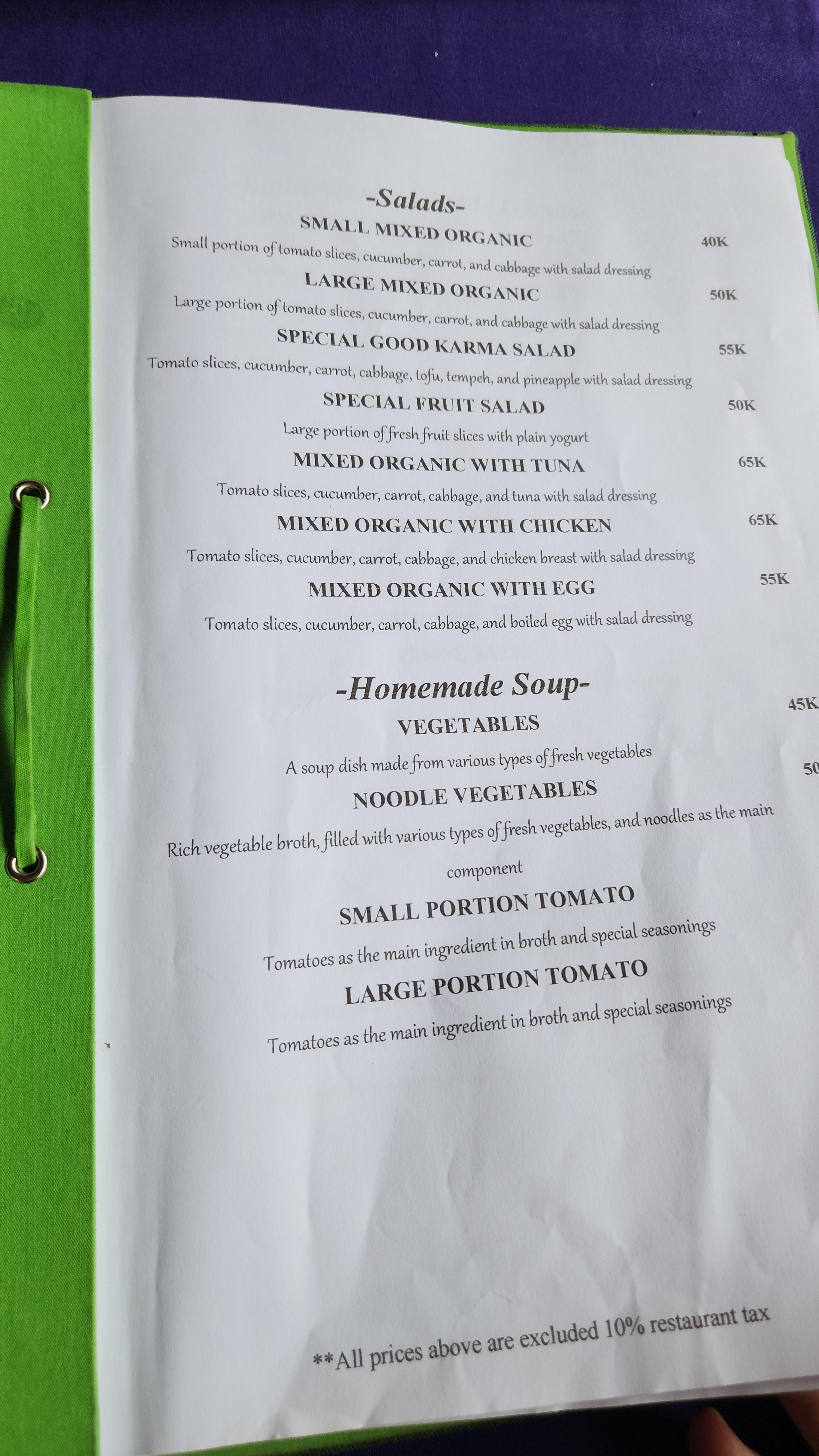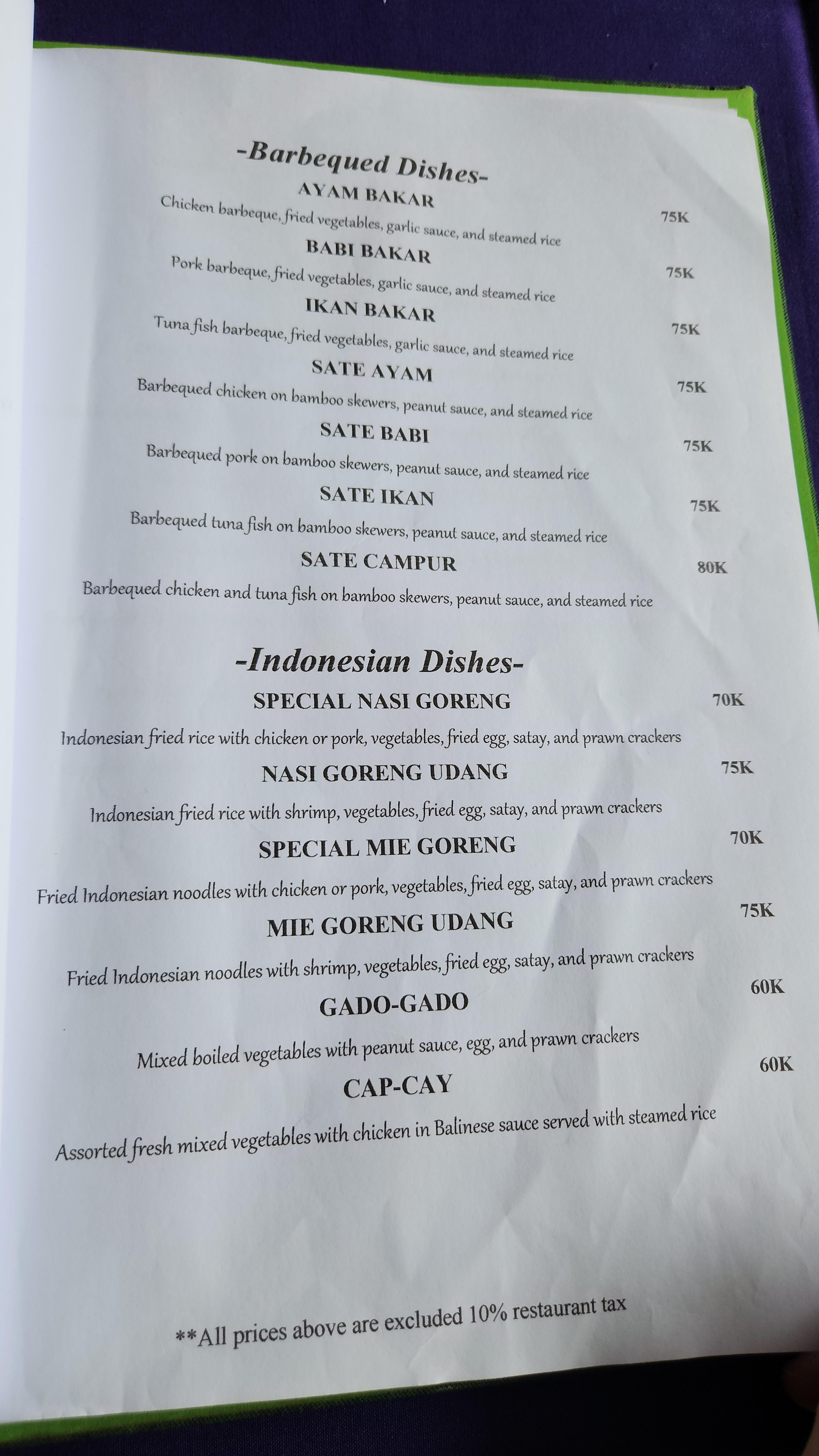 굿카르마 메뉴와 가격은 보다시피 발리에 많이있는 인도네시아 음식점과 비슷하다.