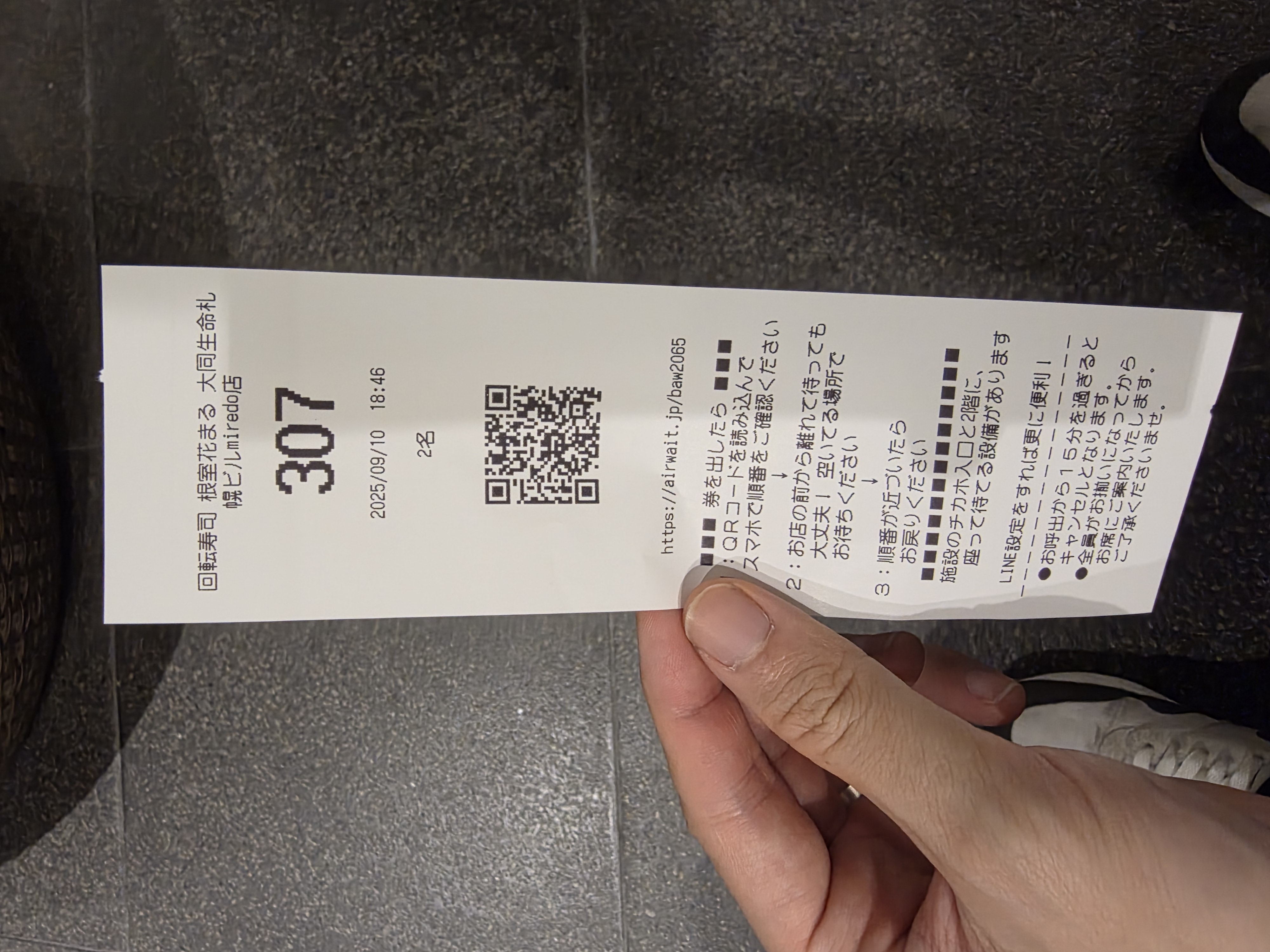 평일이었지만 2시간이나 기다렸다. 역시 웨이팅 지옥으로 유명한 네무로하나마루 다웠다.