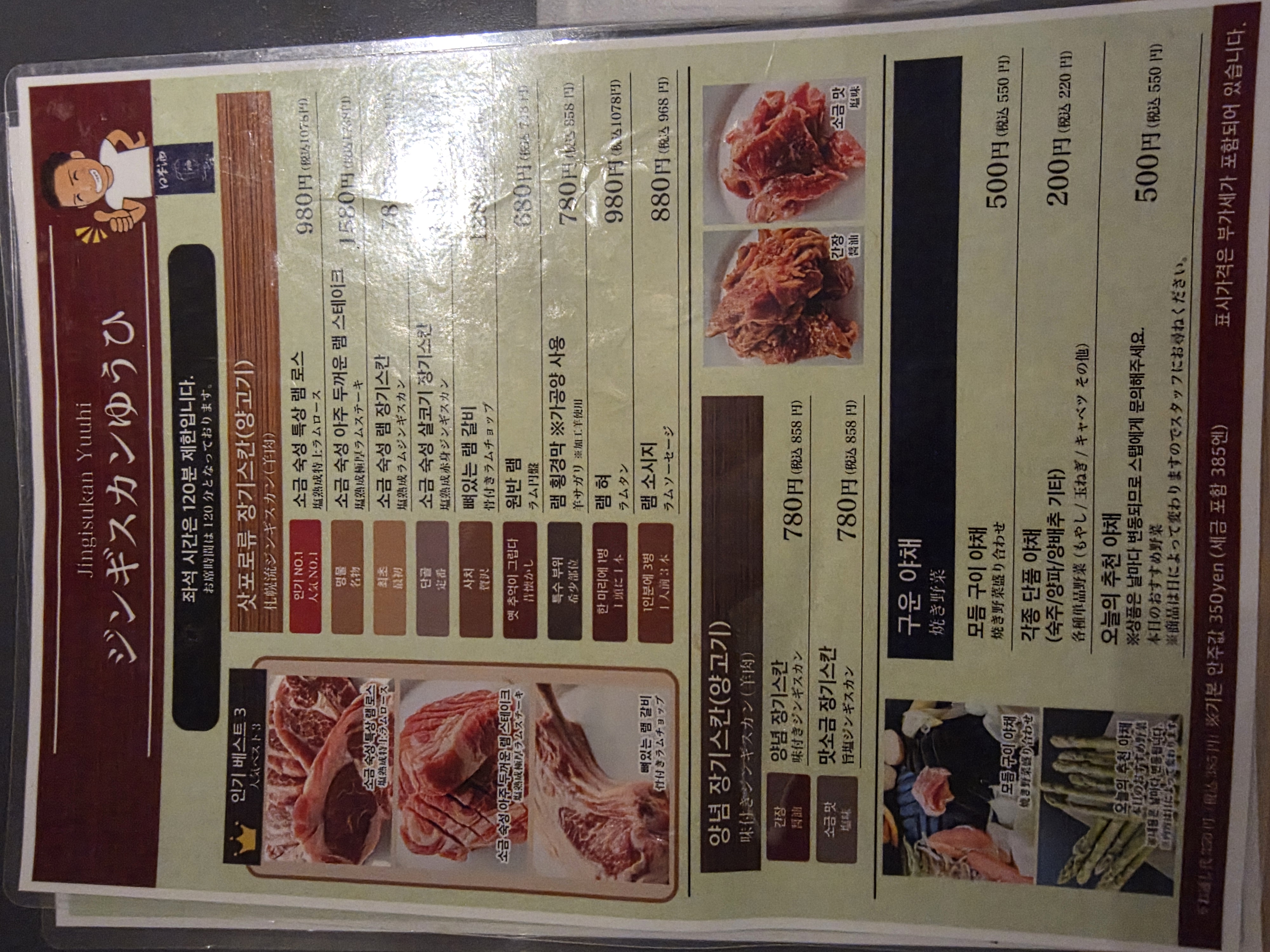 징기즈칸 유우히 단품메뉴들은 1000엔 내외로 나쁘지 않은 가격이고 종류가 많다.