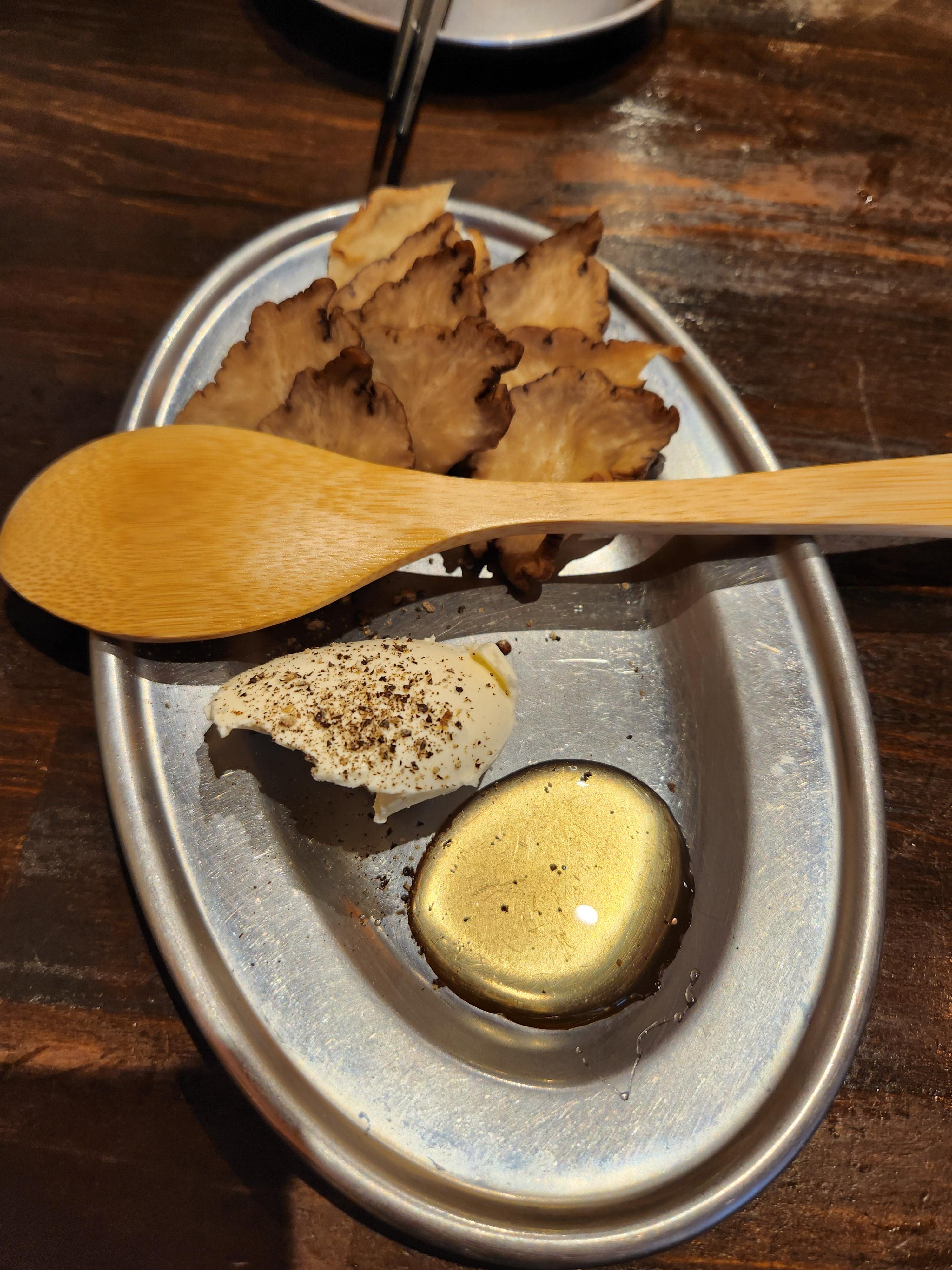 훈연한 우엉을 구운거에 꿀과 크림치즈를 먹는건데 굳이 안먹어도 될듯
