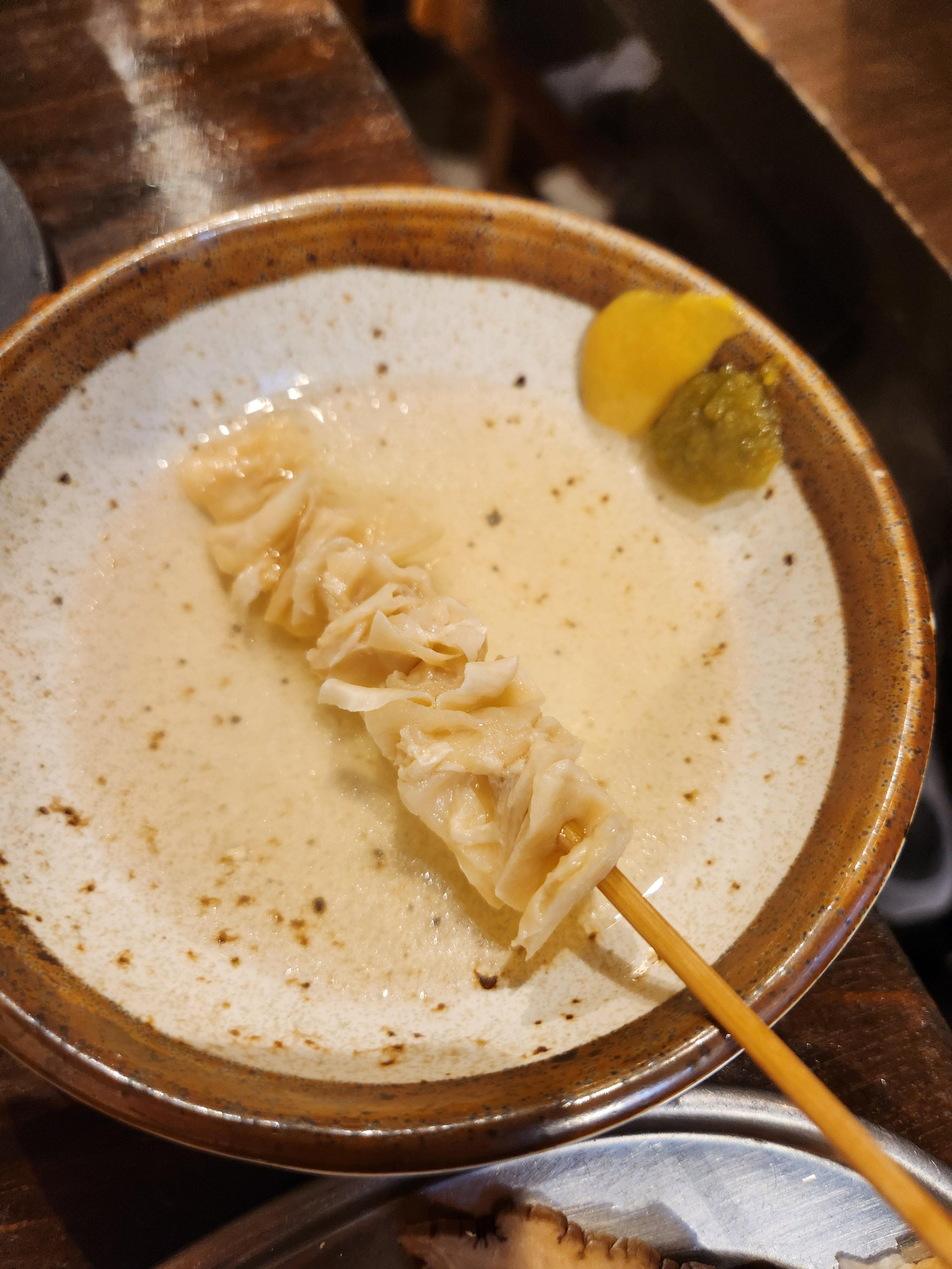 소 힘줄인 스지는 오뎅에 들어간 그것이었고 3종꼬치는 먹을만 했다.