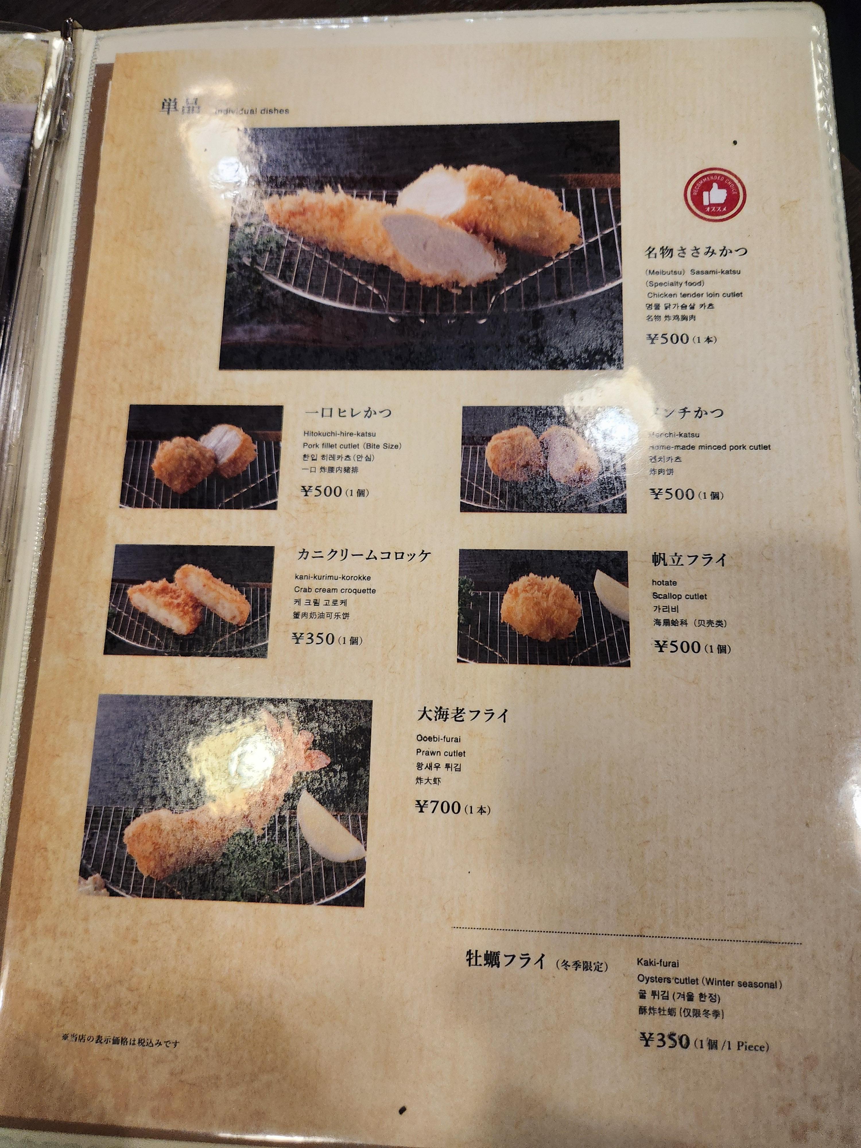 이마카츠 모둠도 있는데 여러가지를 다 먹어보고싶다면 1700엔 모둠을 추천한다.