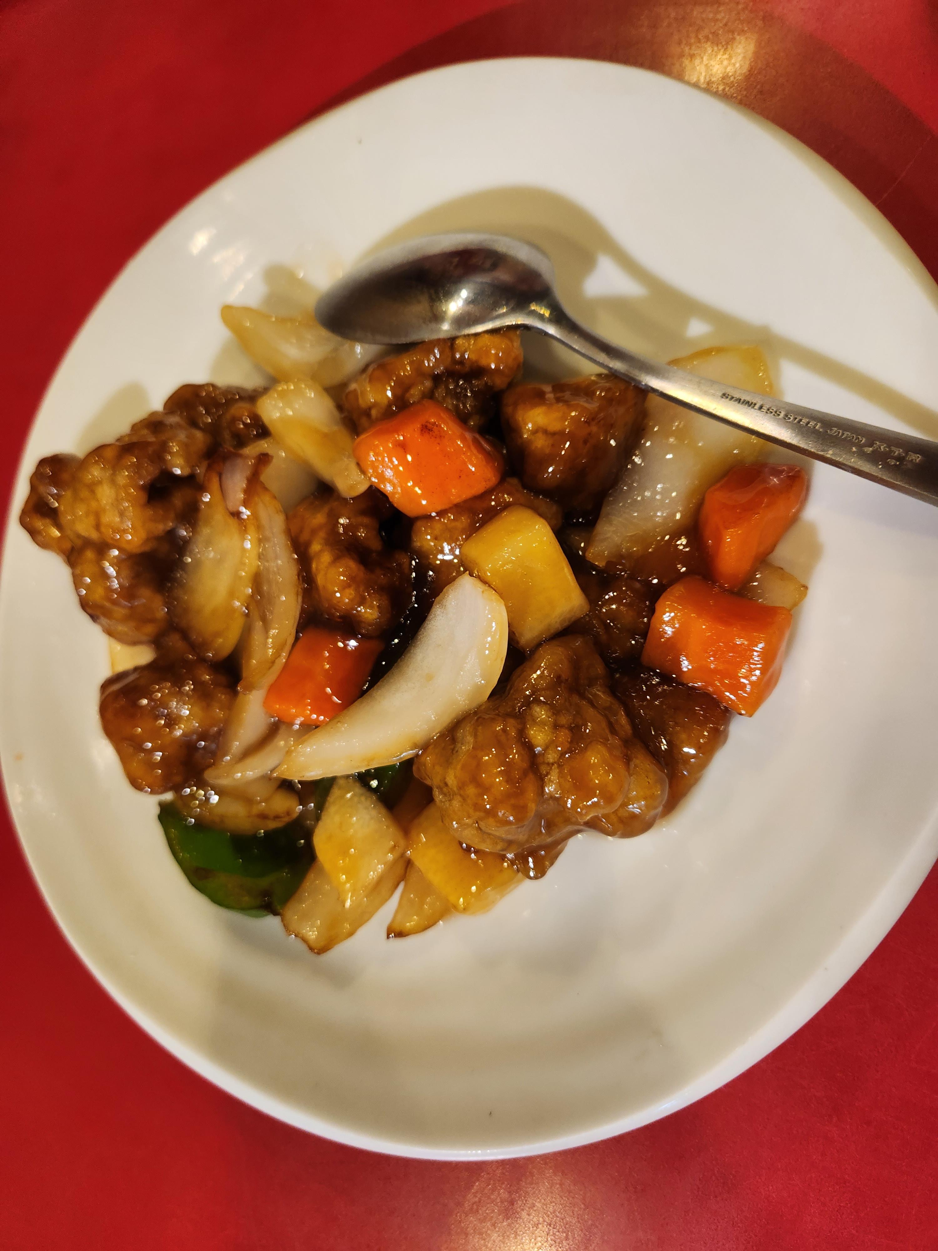 부먹으로 볶아서 나오는데 튀김이 한국처럼 바삭한느낌이아니라 굉장히 부드러웠다.