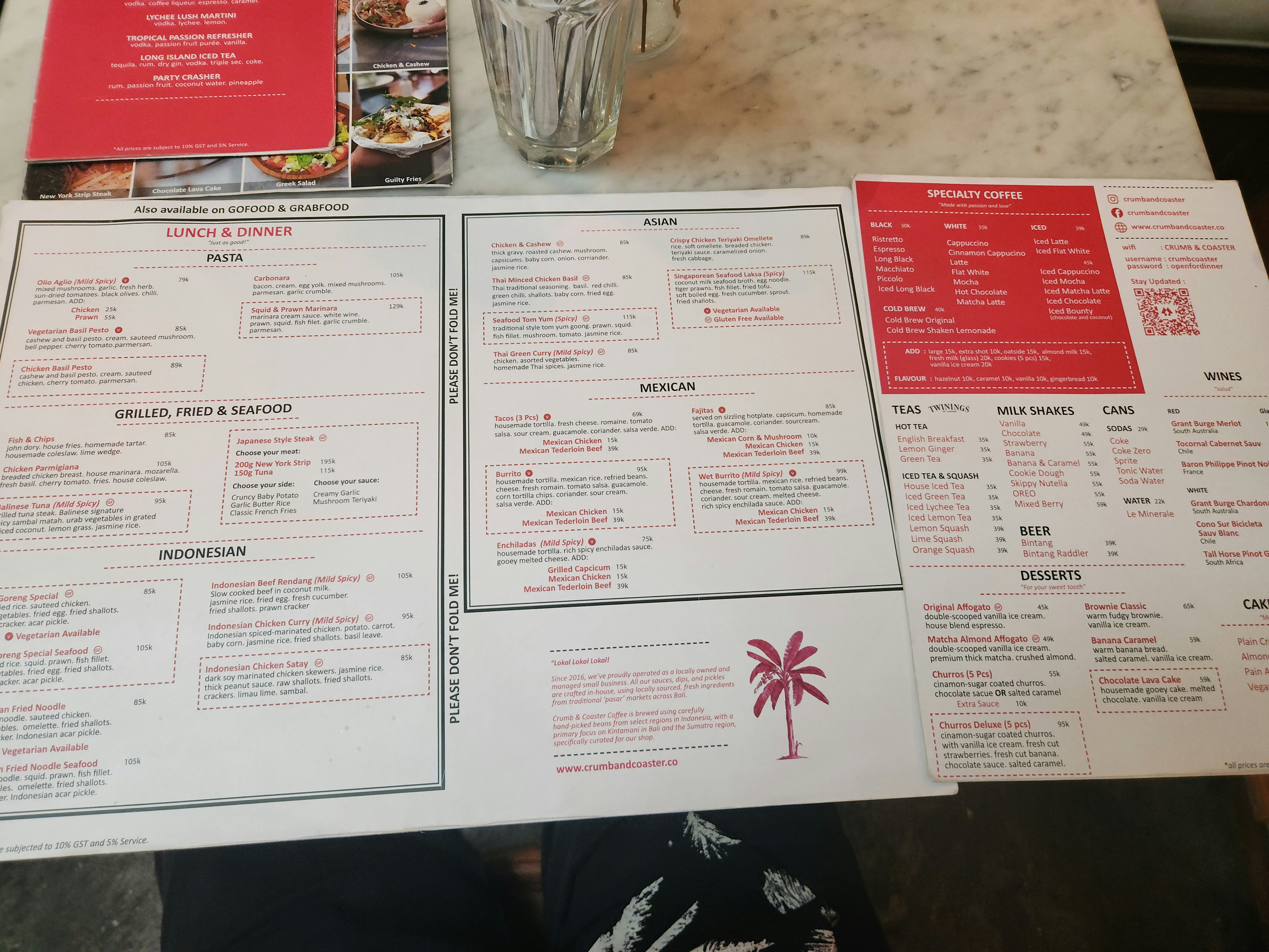 브런치 메뉴 말고 인도네시아음식, 아시안 메뉴가 있으며 보울과 멕시칸 음식도 있다.