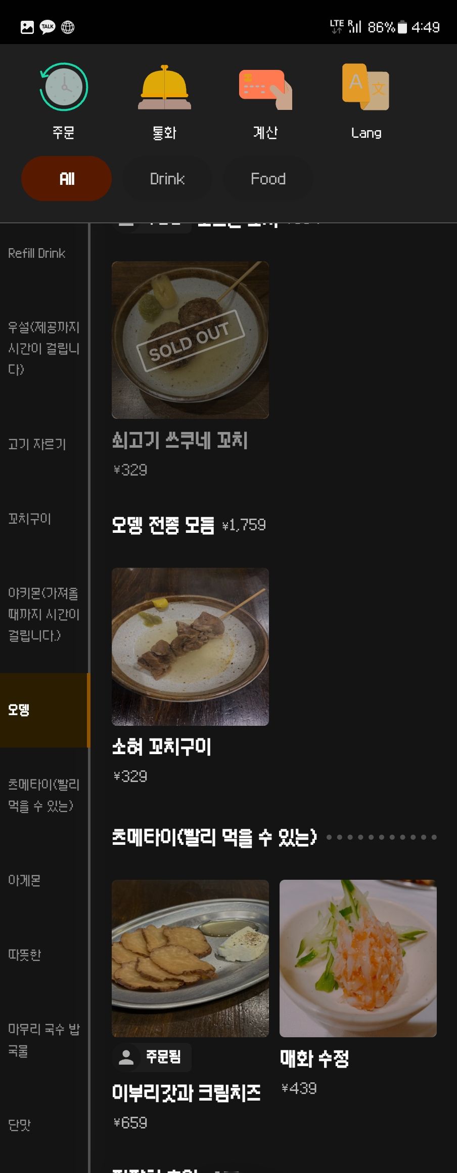 주문은 자리에 있는 큐알코드를 찍어 웹에서 주문하면 된다.