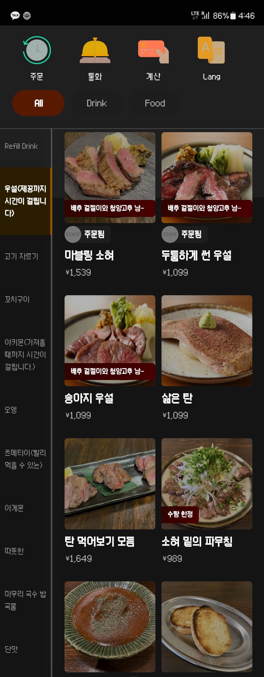 두툼한 우설은 엄청 탄력있는 고기였고 맛도 좋았는데 식으니까 너무 딱딱해서 좀 힘들었다.