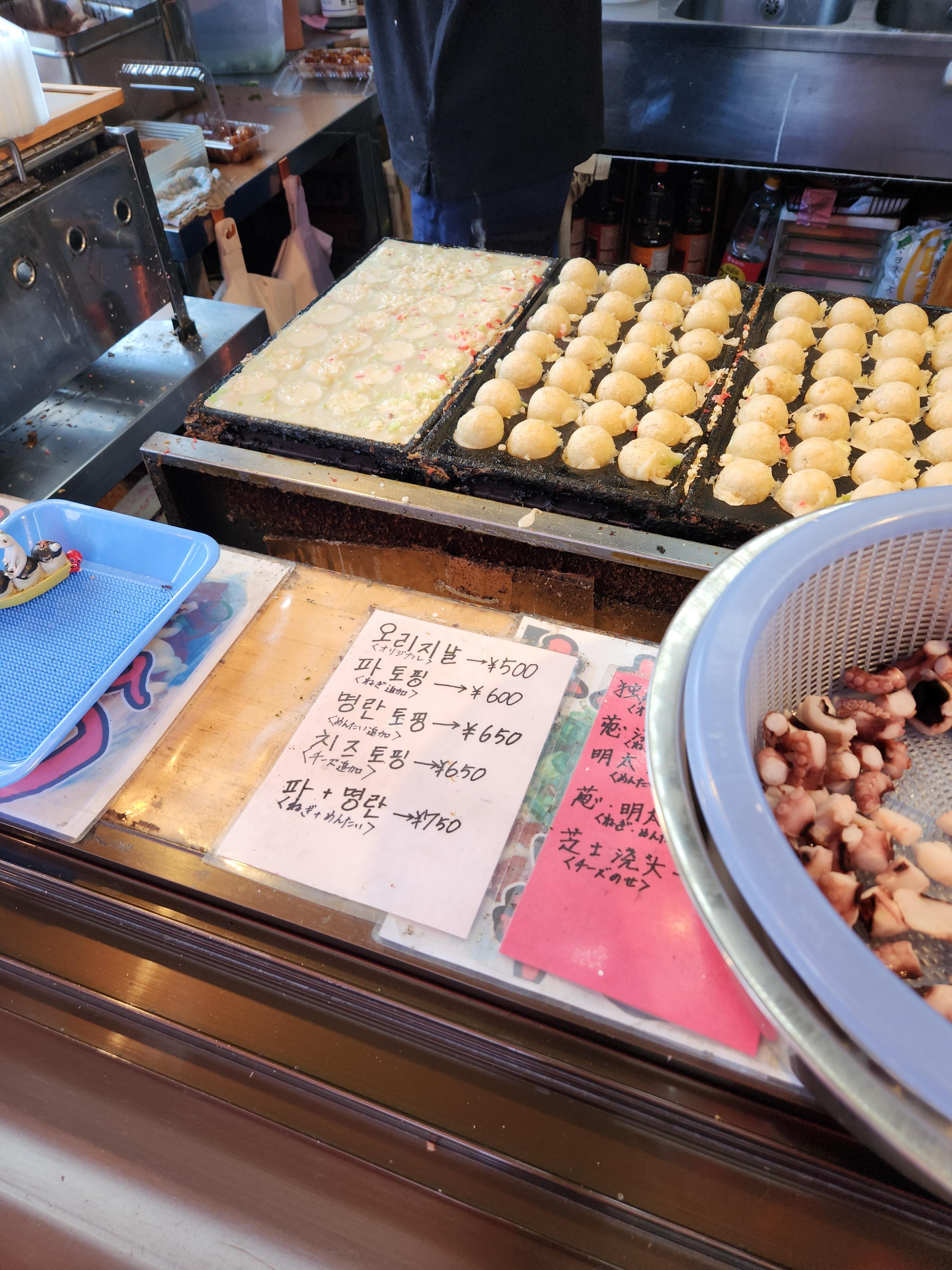 일본간식중 빼먹을 수 없는 타코야끼도 팔고있다.