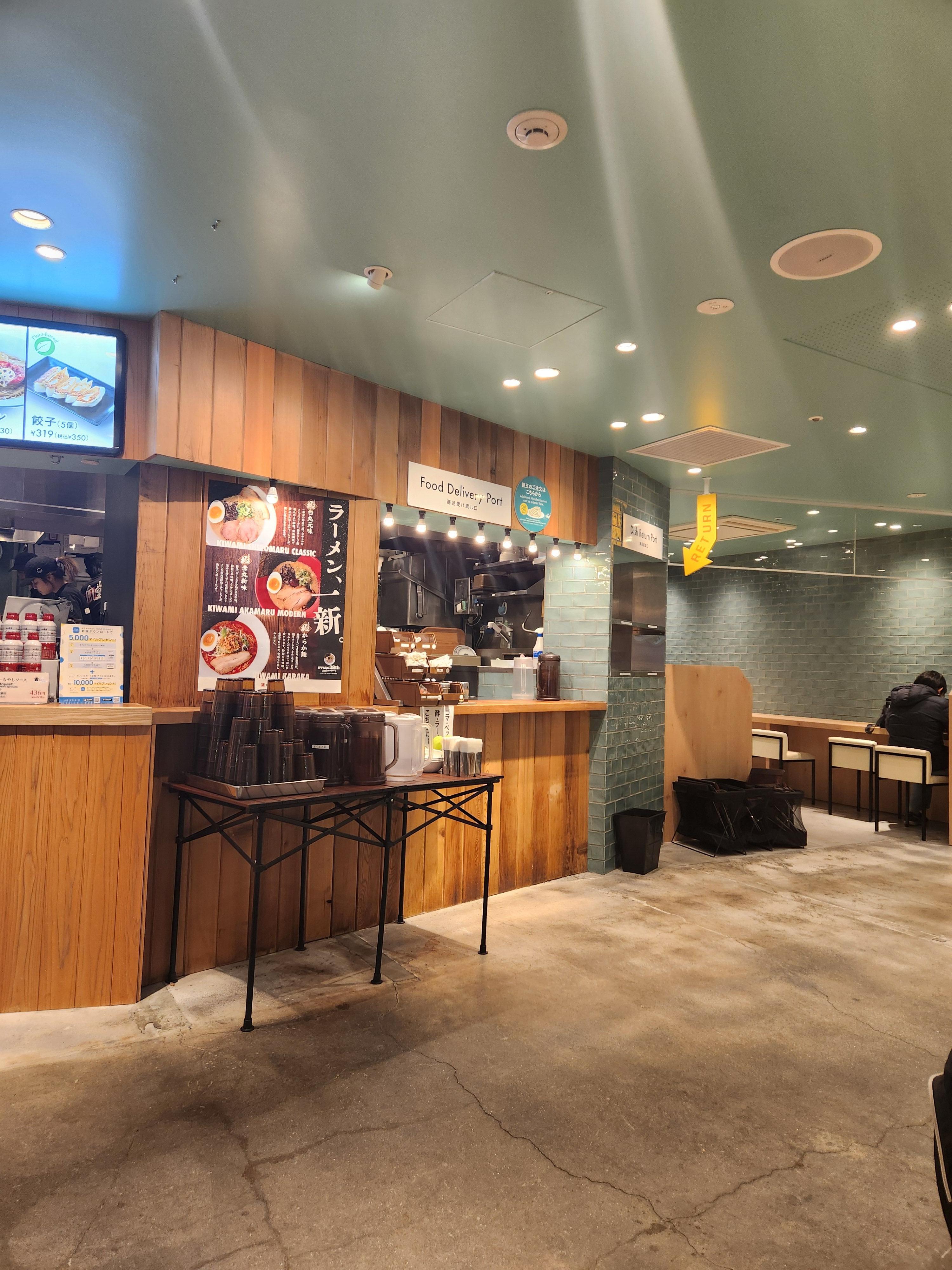 계산하면 진동벨을 주는데 저기 음식가져가는데서 라멘을 받아가고 젓가락, 휴지 등을 챙기면 된다.