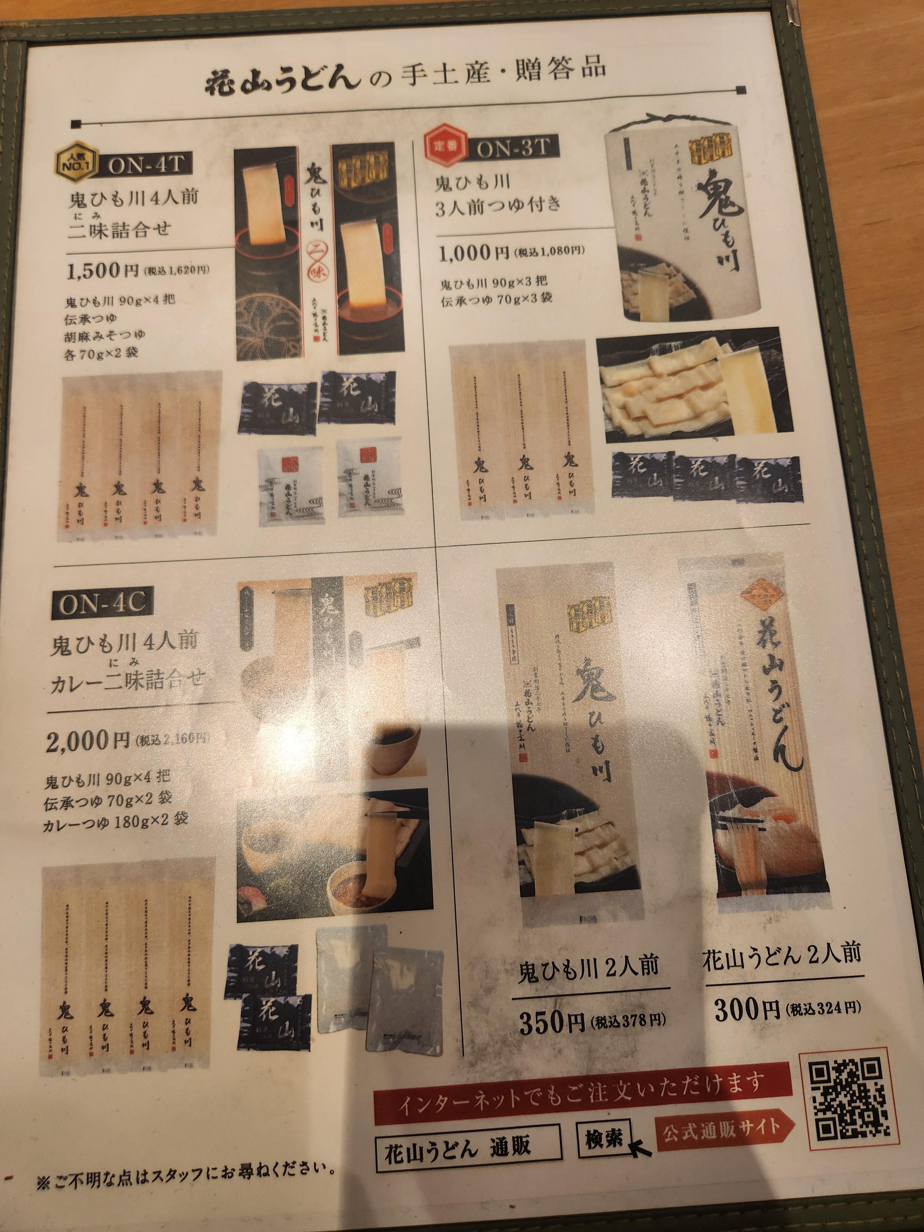 히모카와우동 긴자점 메뉴판은 상품메뉴판, 식사메뉴판 두 개가 있다.