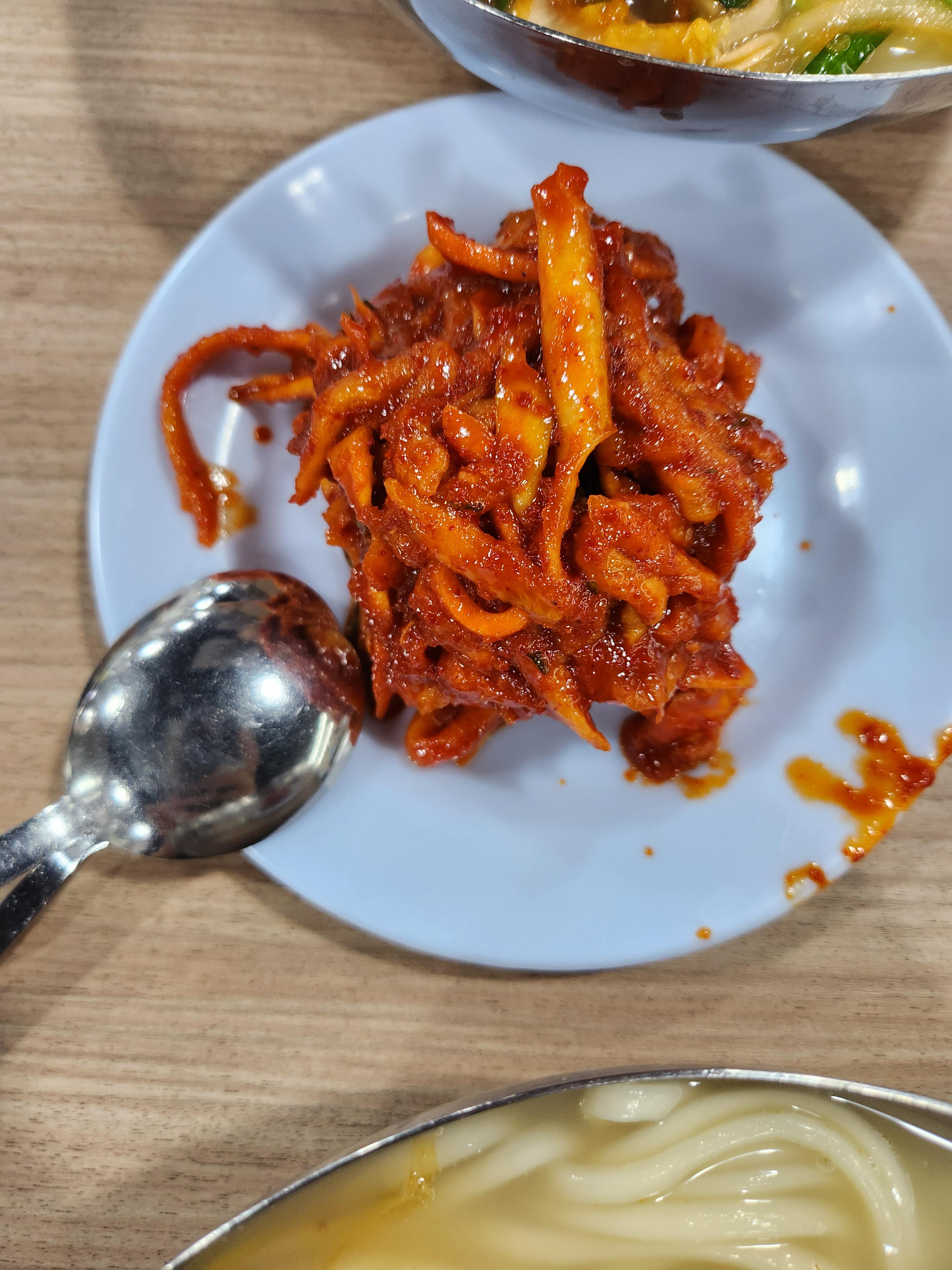 초계냉면 느낌이고 국물은 찍어먹는용으로 진하고 시큼했다.