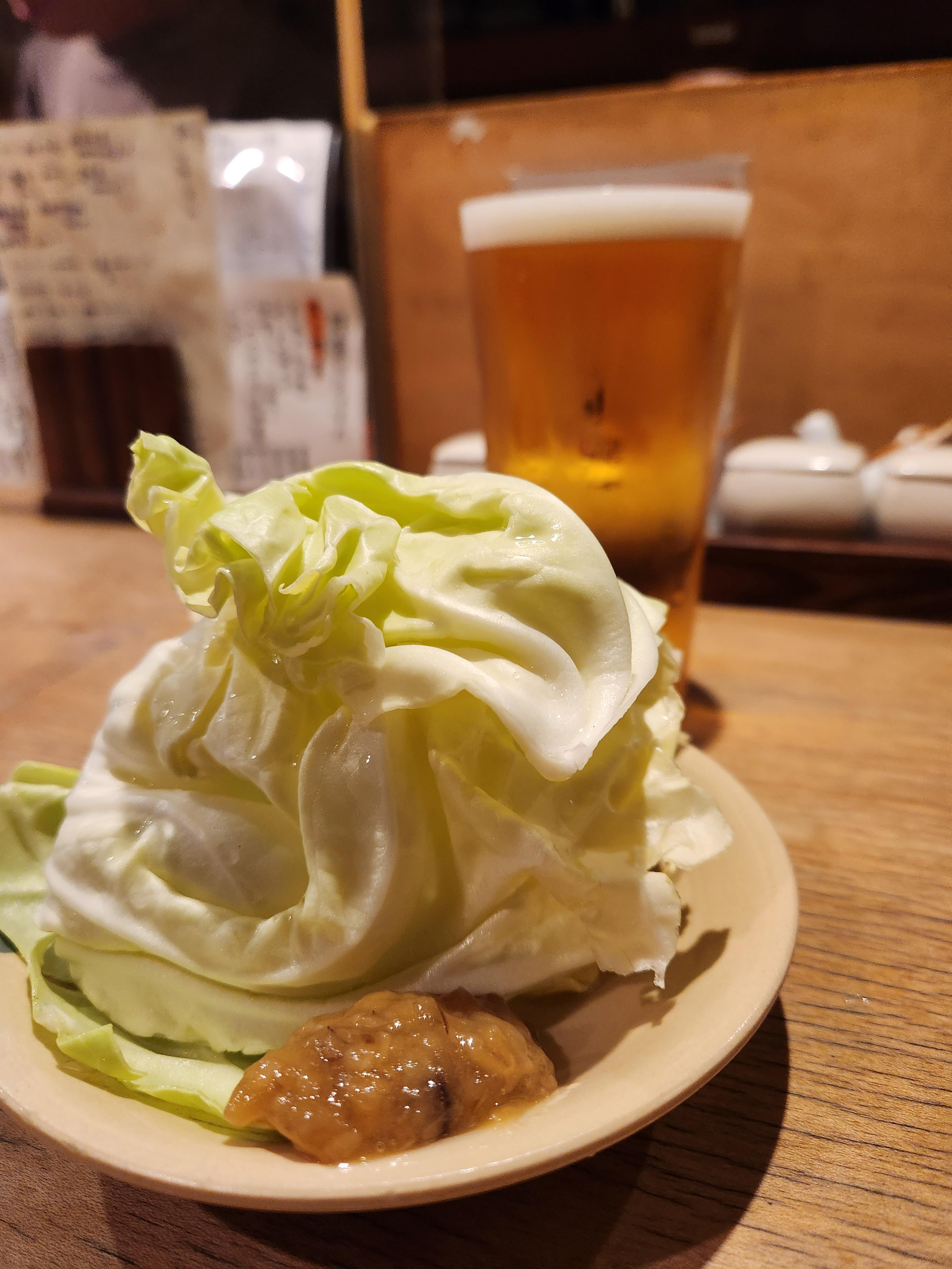 양배추야 이자카야나 야키토리가게의 공통적 안주지만 우즈라야의 미소소스는 특별히 맛있었다.