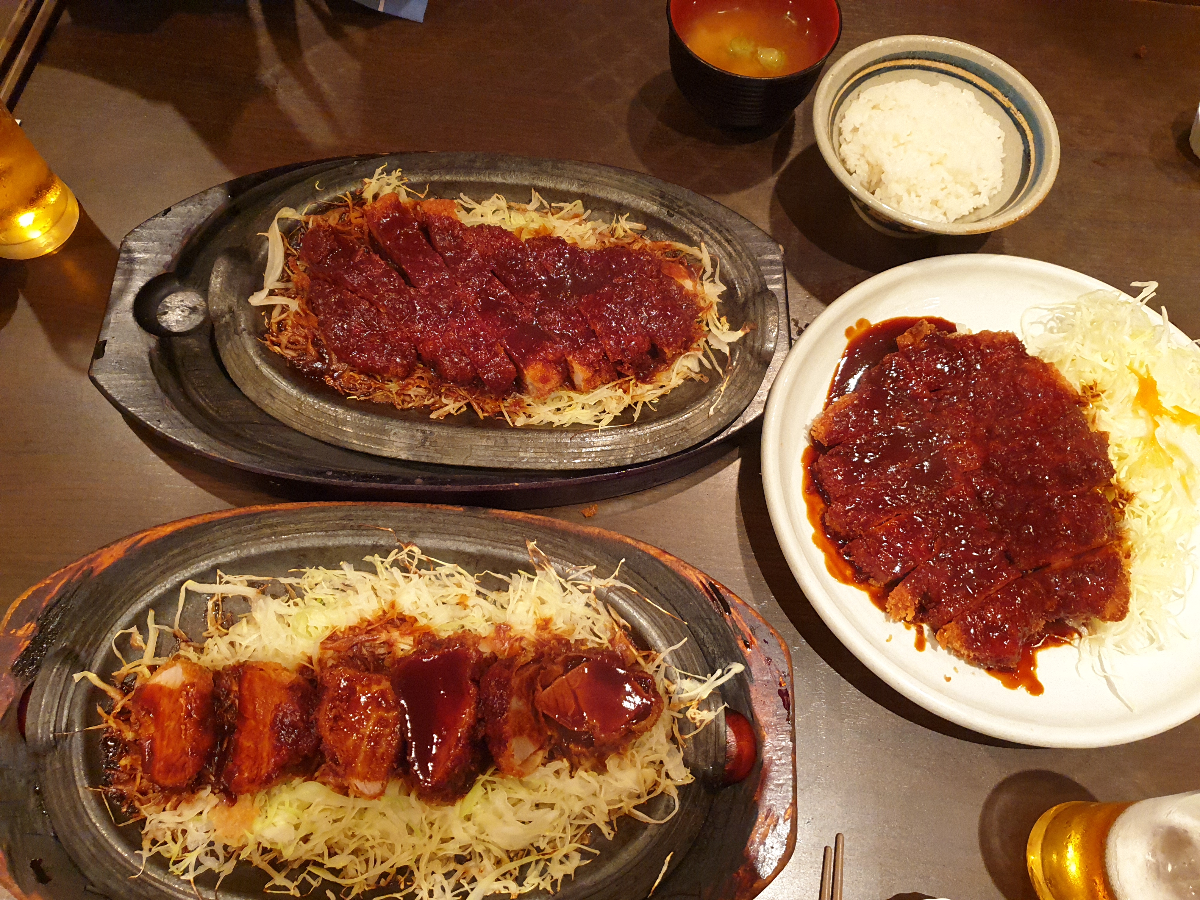 접시에 나오는 미소카츠들은 철판과는 맛이 차이가 없다.