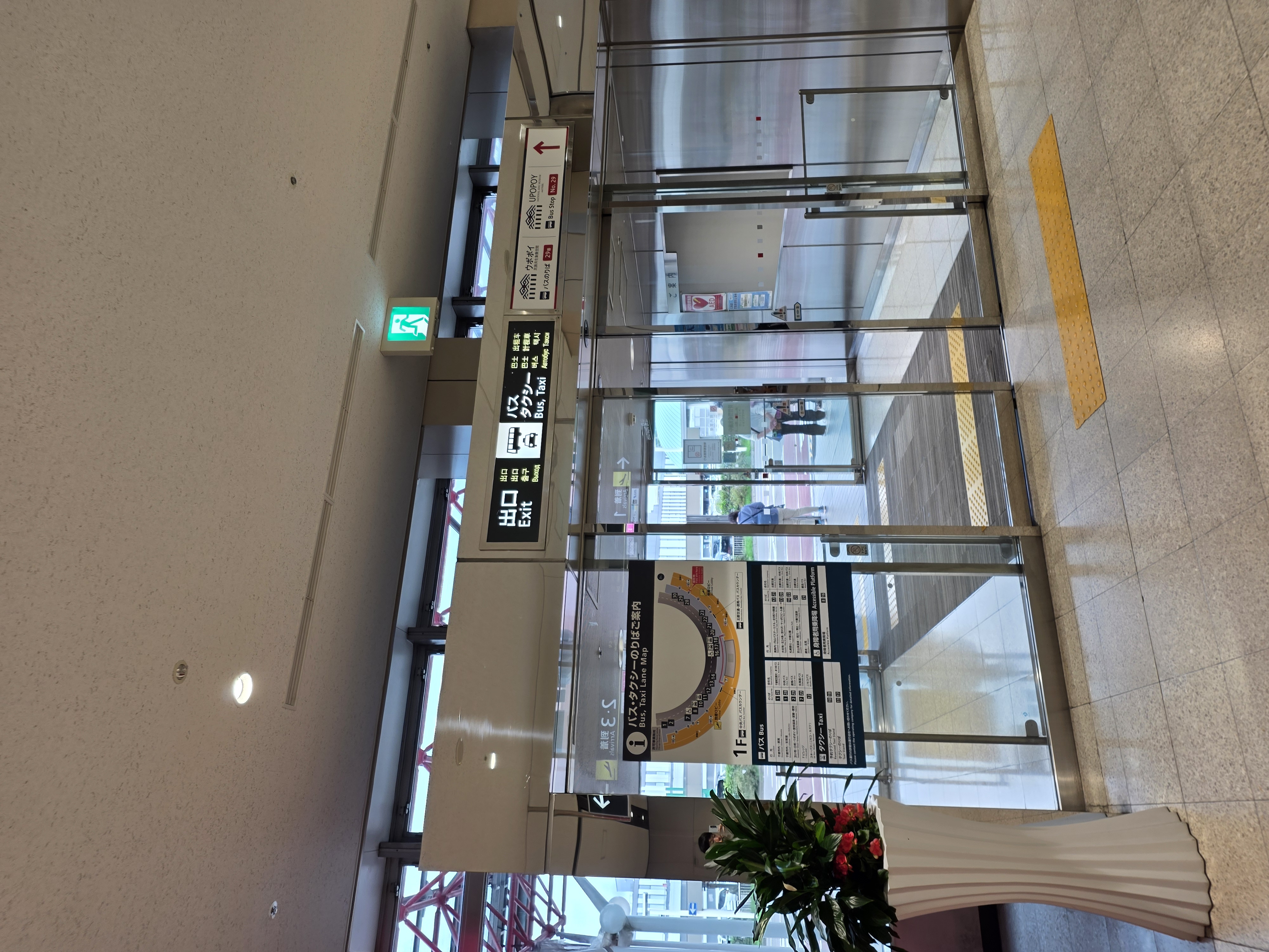 신치토세공항에서 도난버스를 타려면 버스라고 표시된곳까지 걸어가야한다.