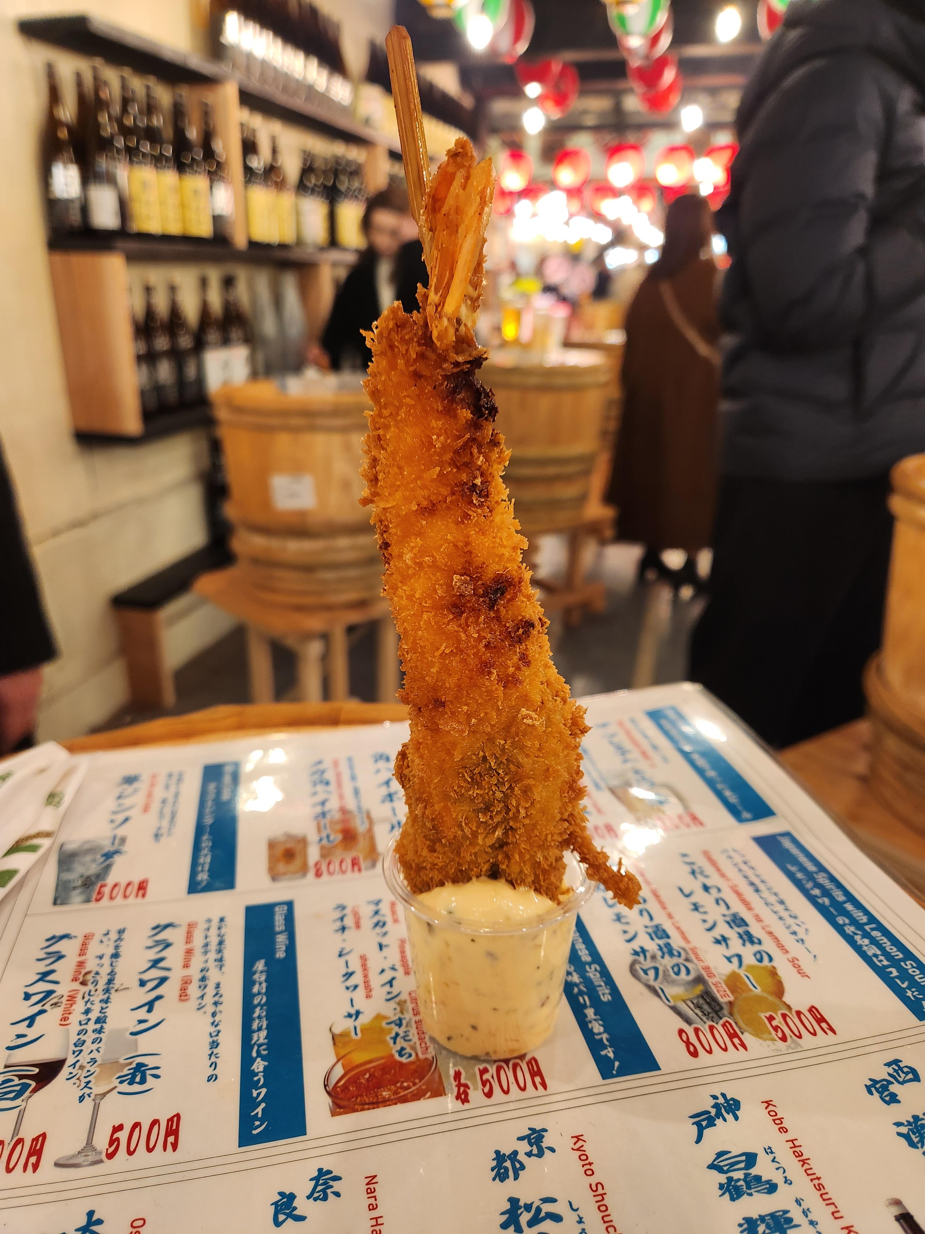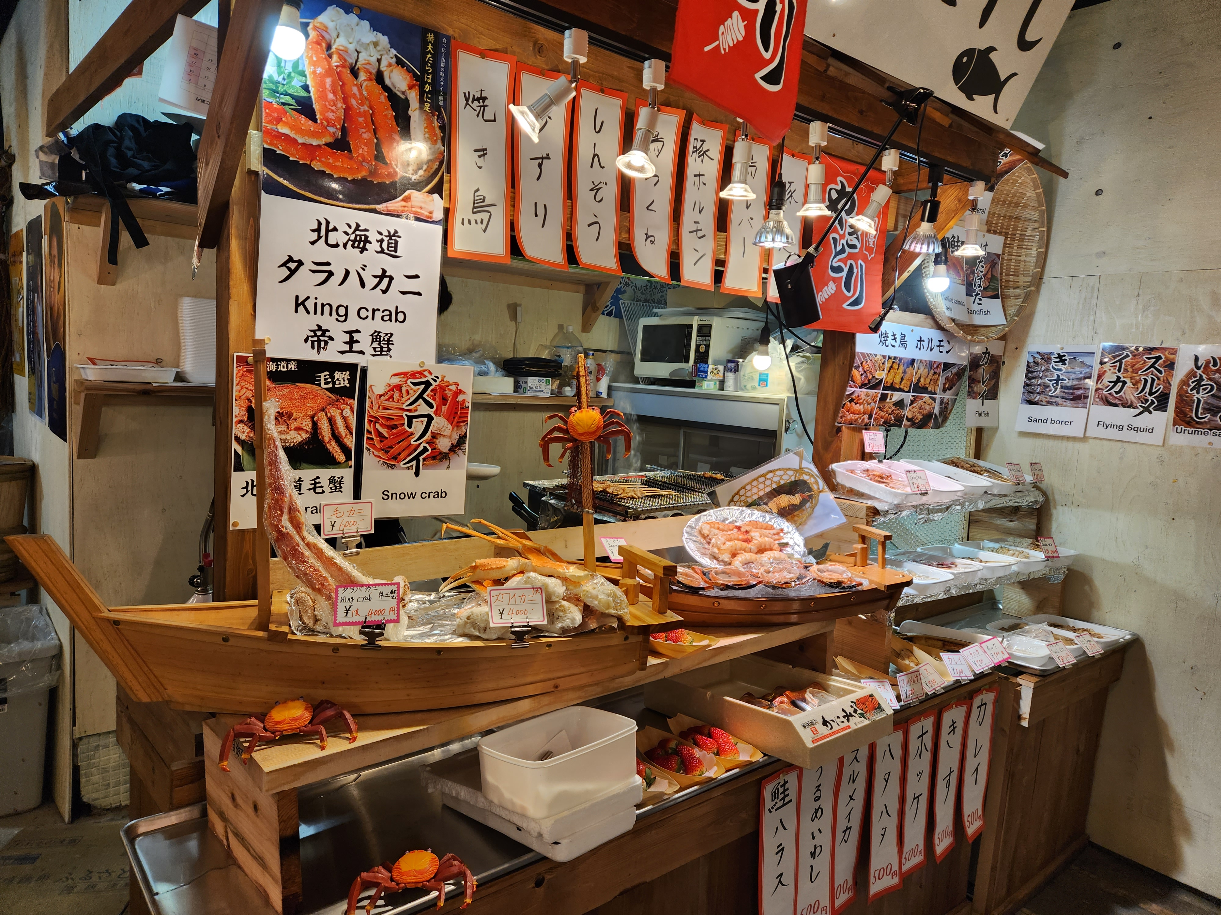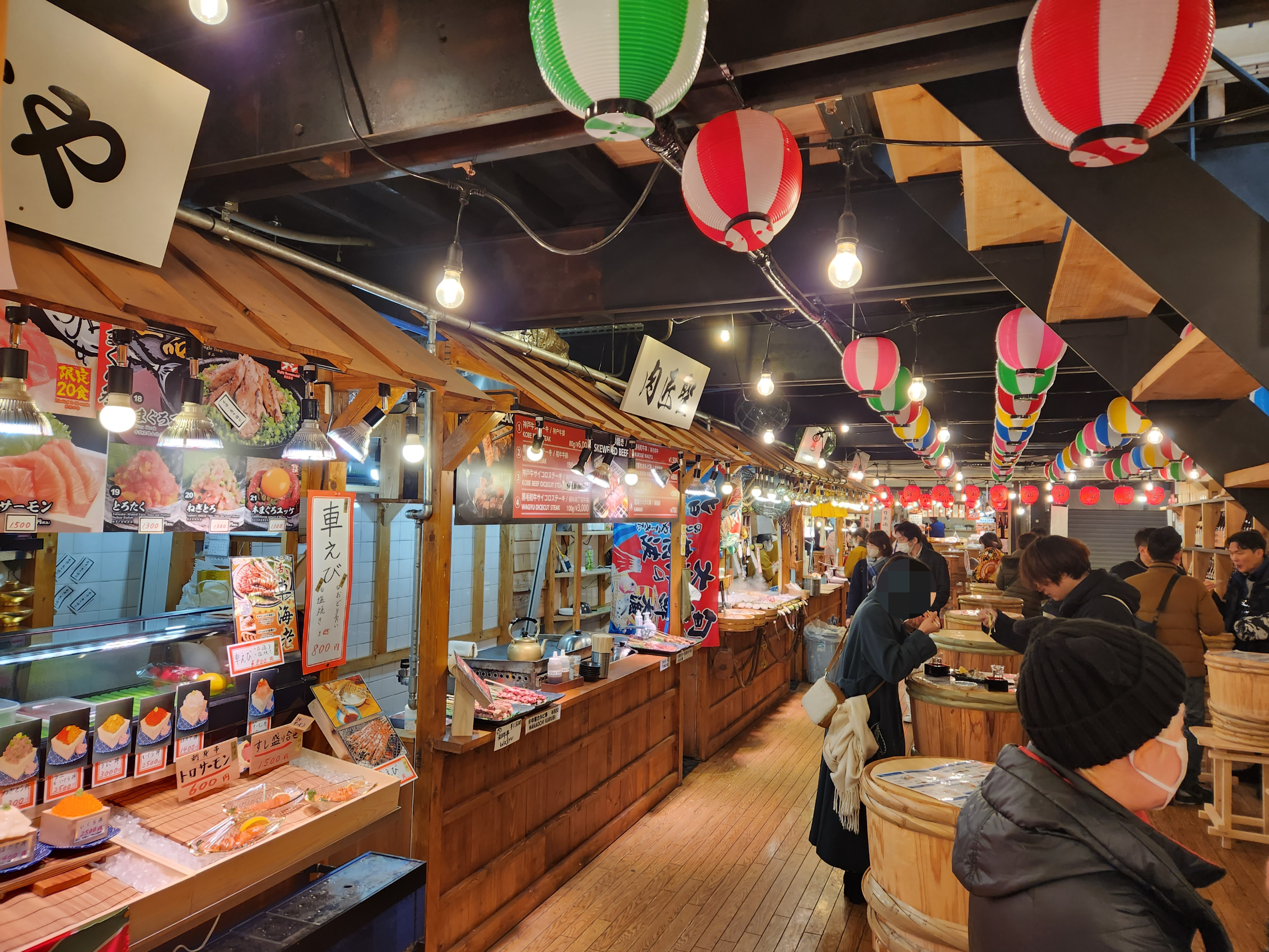 니시키시장에서 가장 좋았던 것은 야타이무라 포장마차촌(錦屋台村, Yatai mura STALL VILLAGE) 에서 마음에드는 안주 하나씩 사서 사케 잔술 또는 맥주와 함께 먹을 수 있었다는 것 이다.