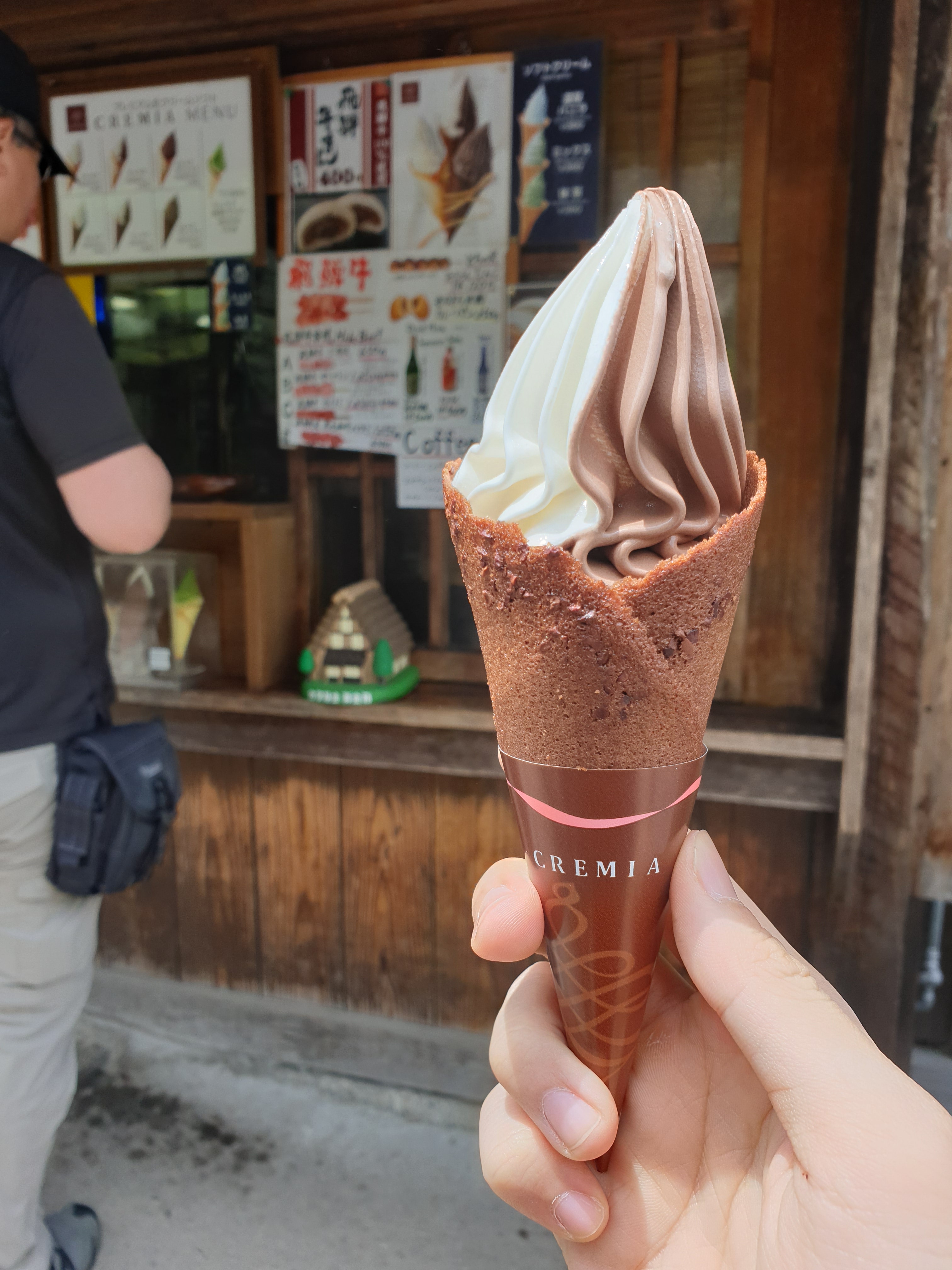 일반 콘은 200엔대 이지만 크레미아 라고 초코로 감싼 소프트콘은 400엔대다.