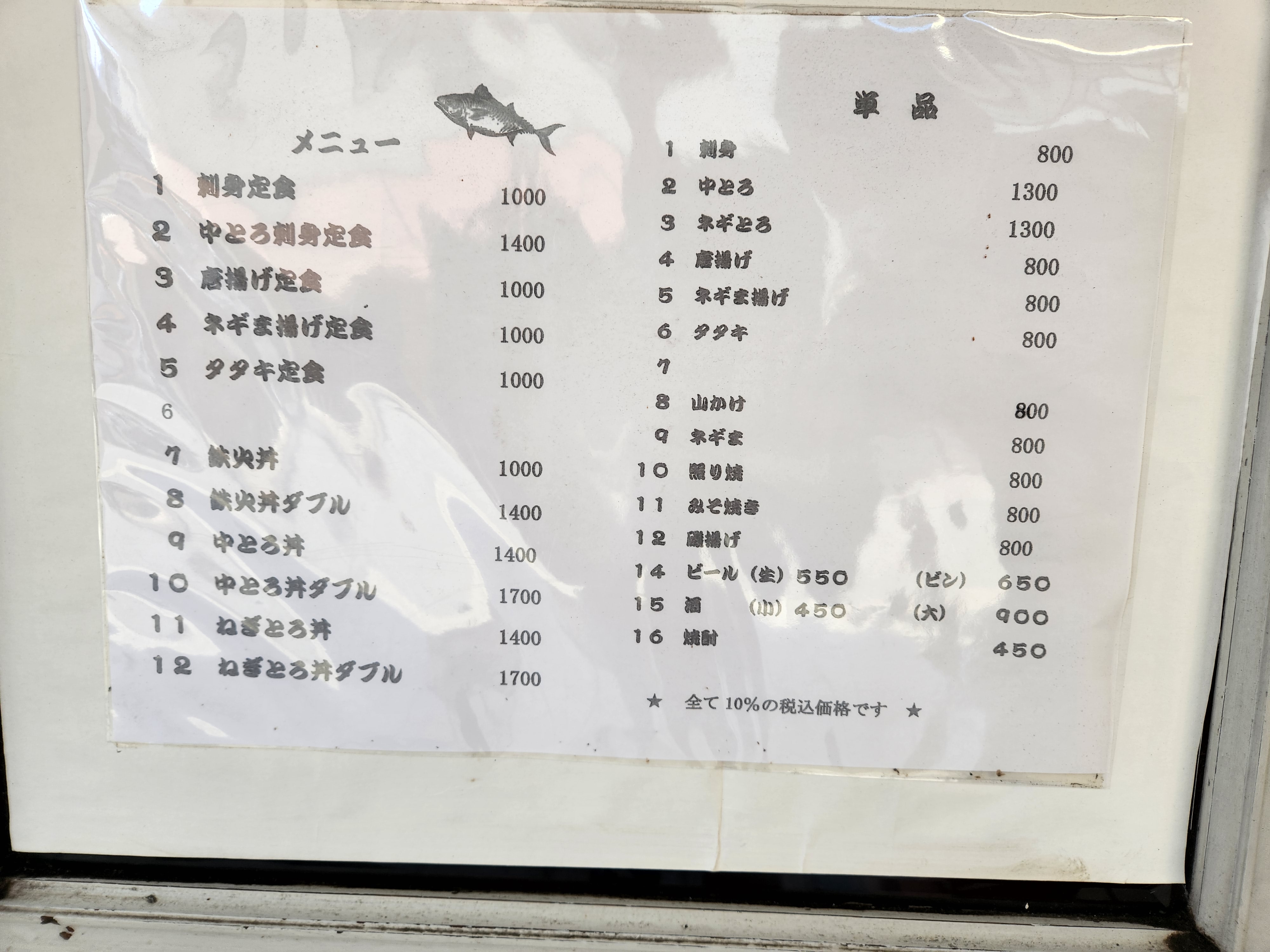 <멘니히카리오 메뉴, 가격>