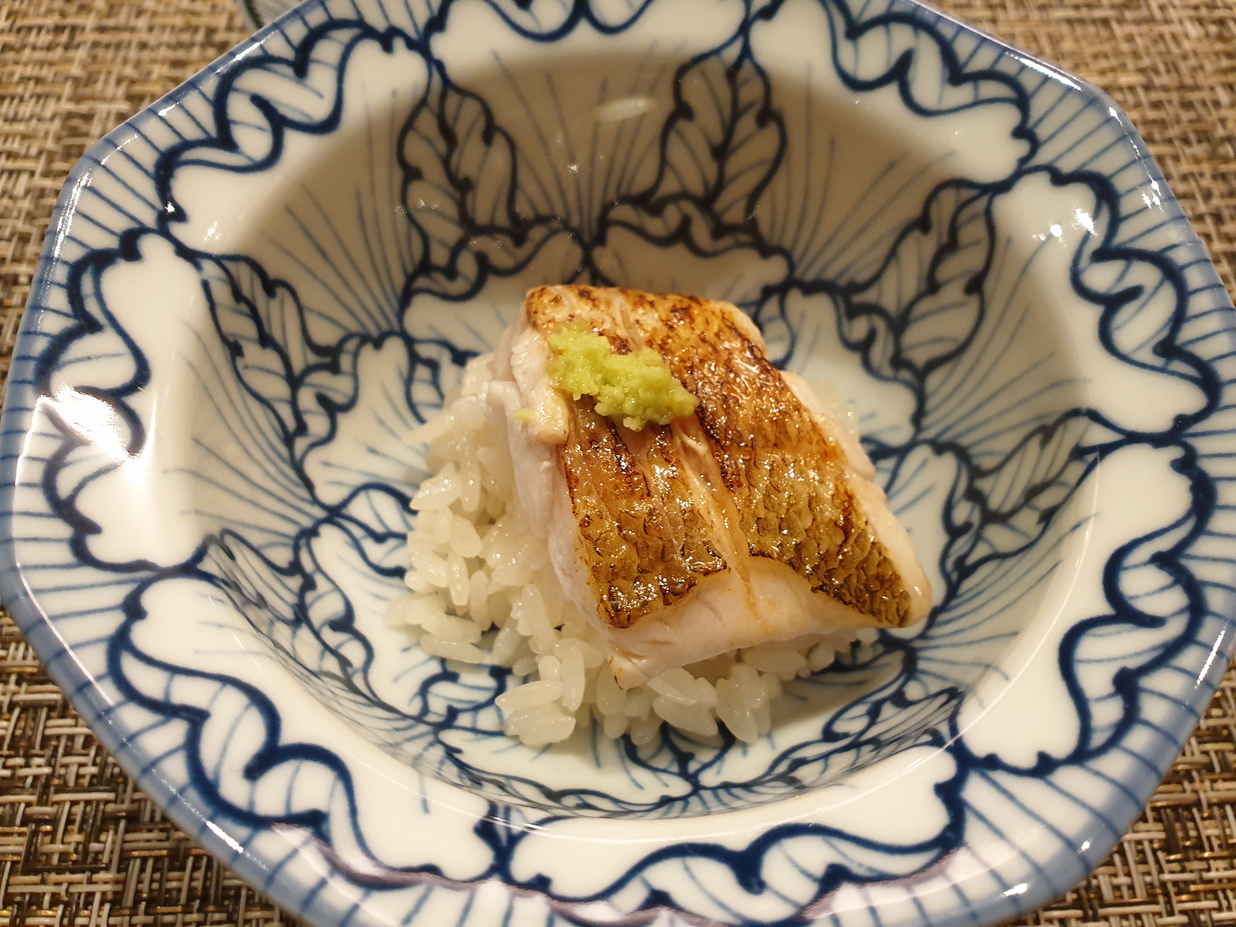 금태 아부리 초밥이 나왔는데 젓가락으로 집으면 부서지므로 그릇에 주셨다.