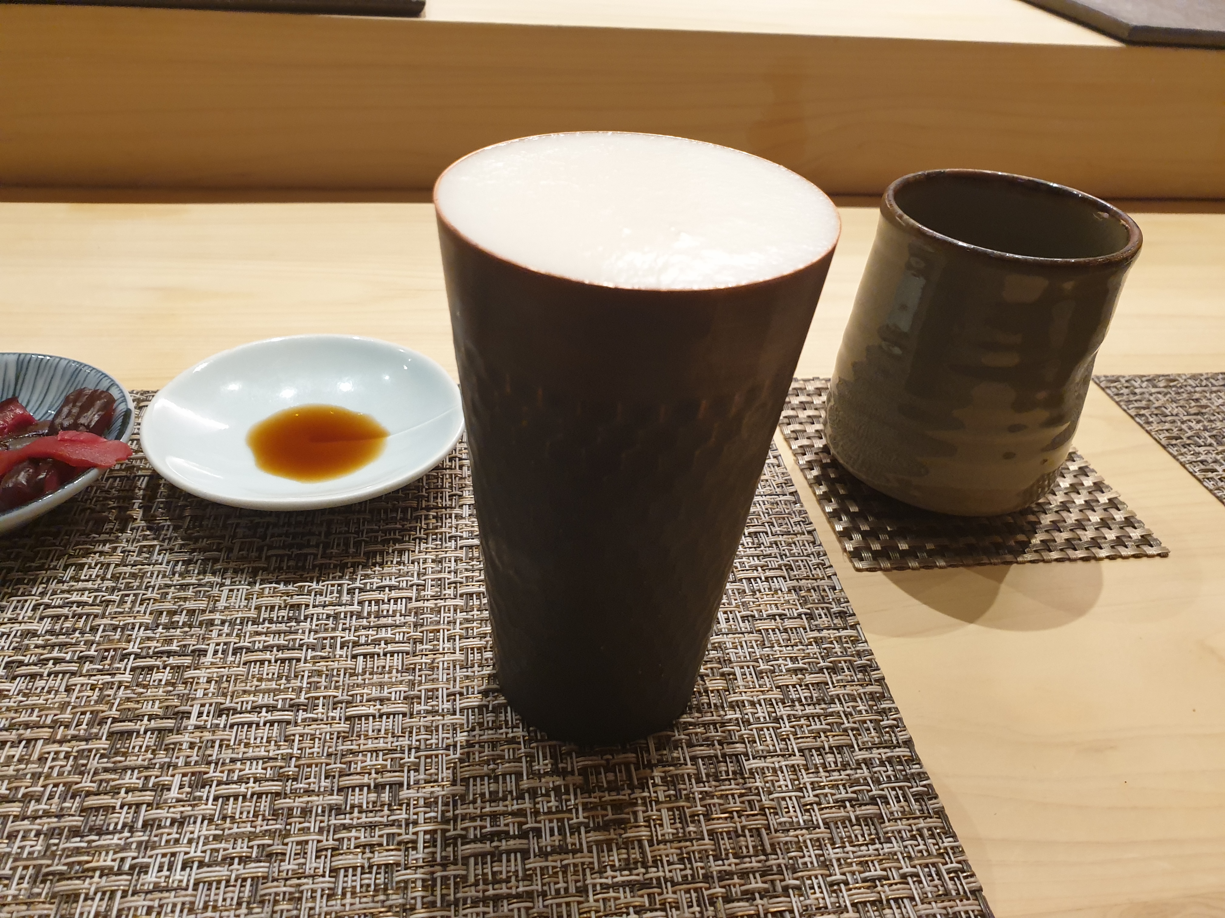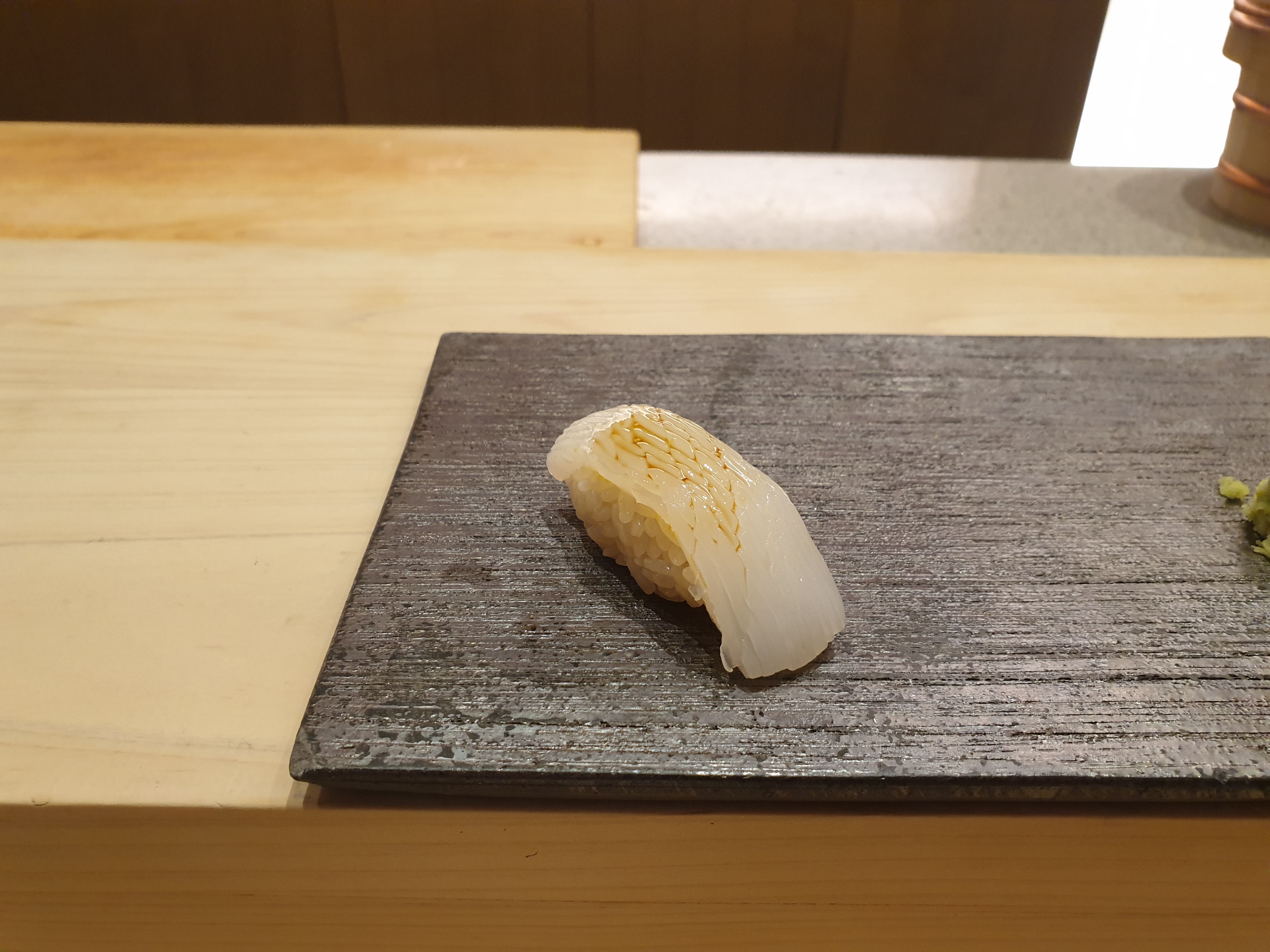 마지막에 가장 맛있었던 초밥 한피스를 더 주시는데 나는 아귀간을 골랐다.