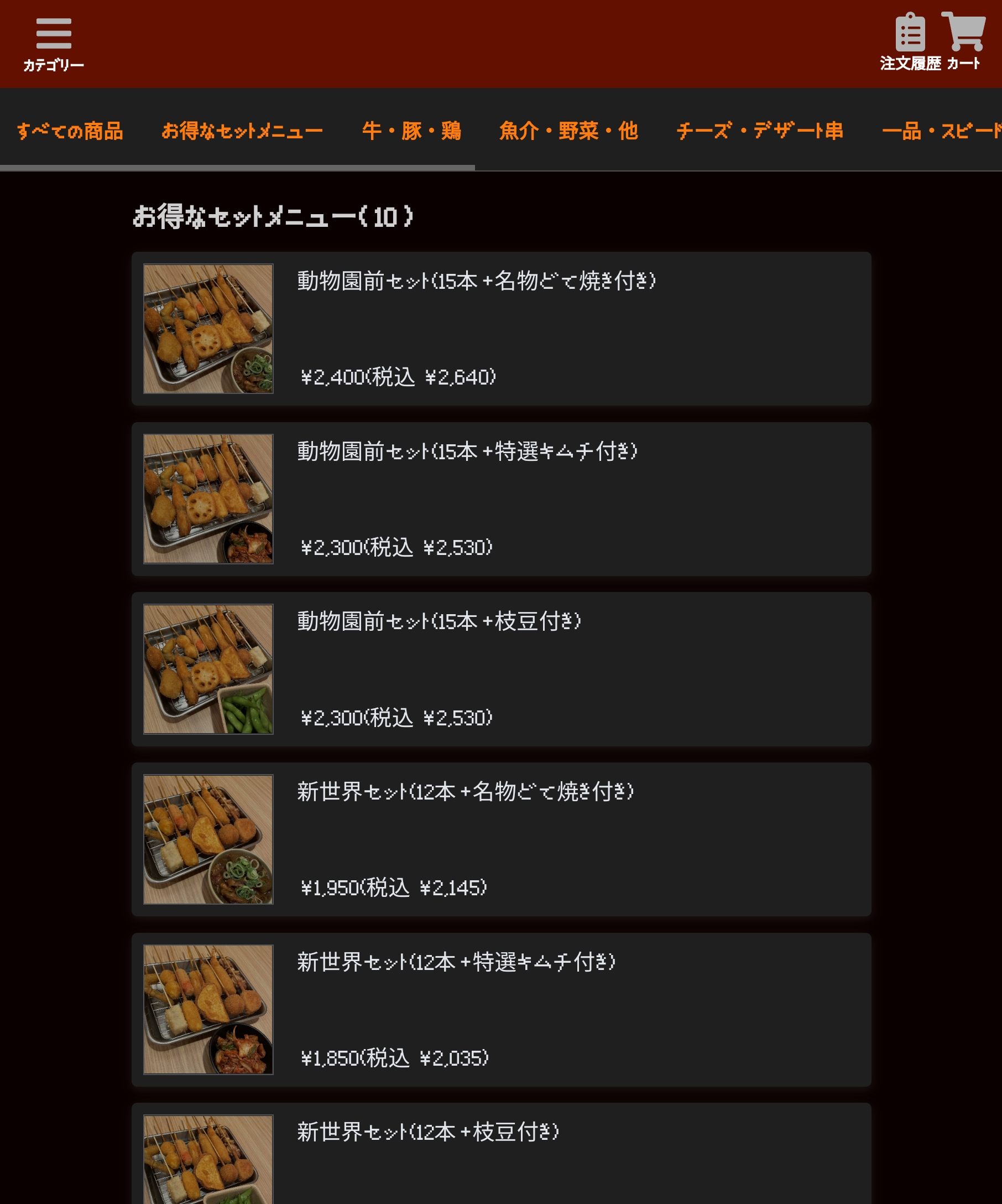 동물원앞 세트 - 꼬치 15개+도테야키 2400엔으로 2개 주문했다.